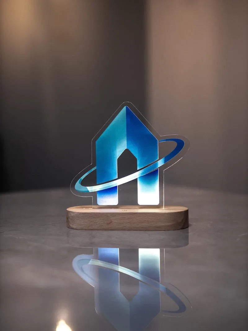 Custom Acrylic Business Logo Sign Personalized Brand QR Plaque Light Lamp Corporate Gifts Wood Social Media Table Decor Sign