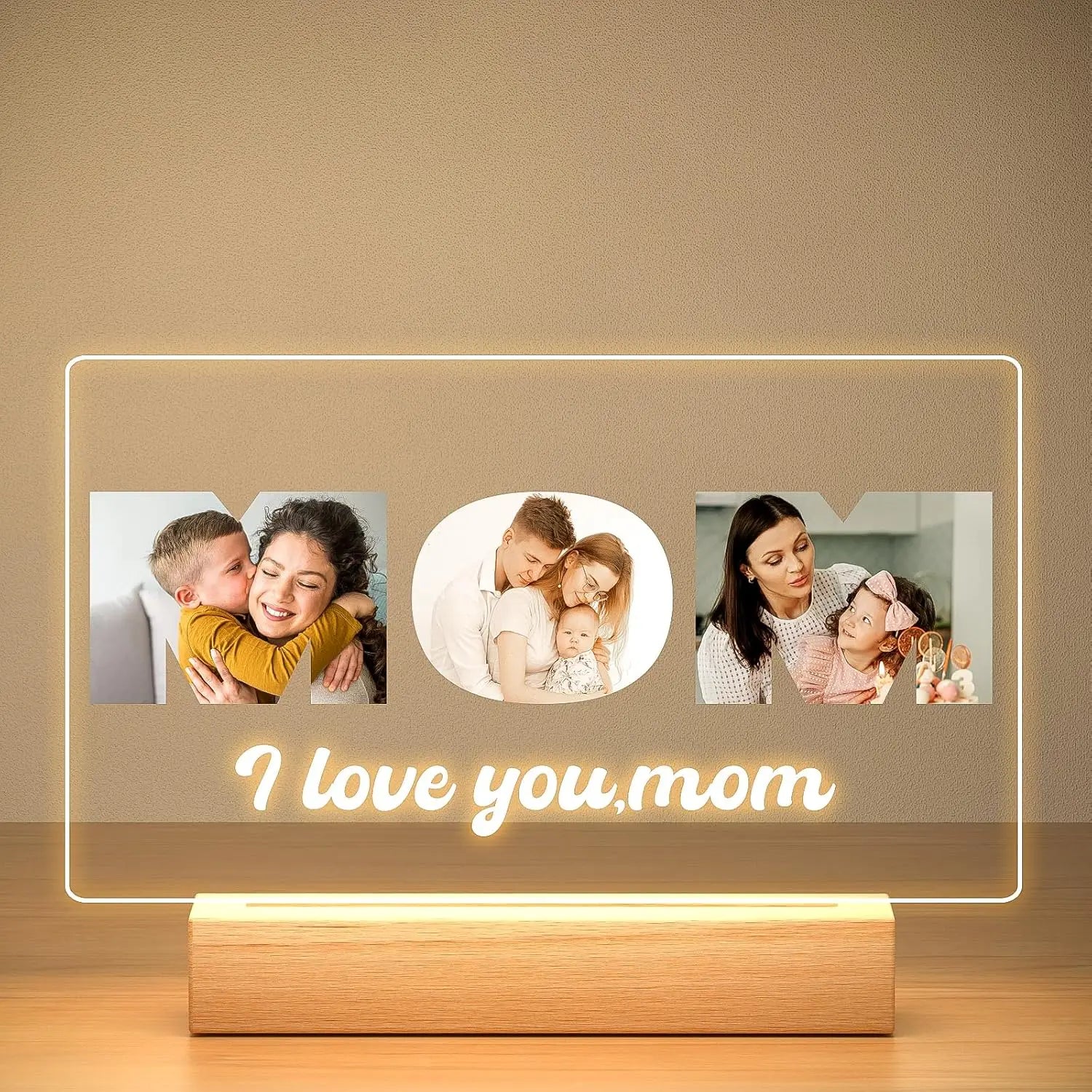 Custom Photo Acrylic Plaque Anniversary Gifts Personalized Photo Text Bedroom Night Light MOM DAD Family Day Birthday Gifts