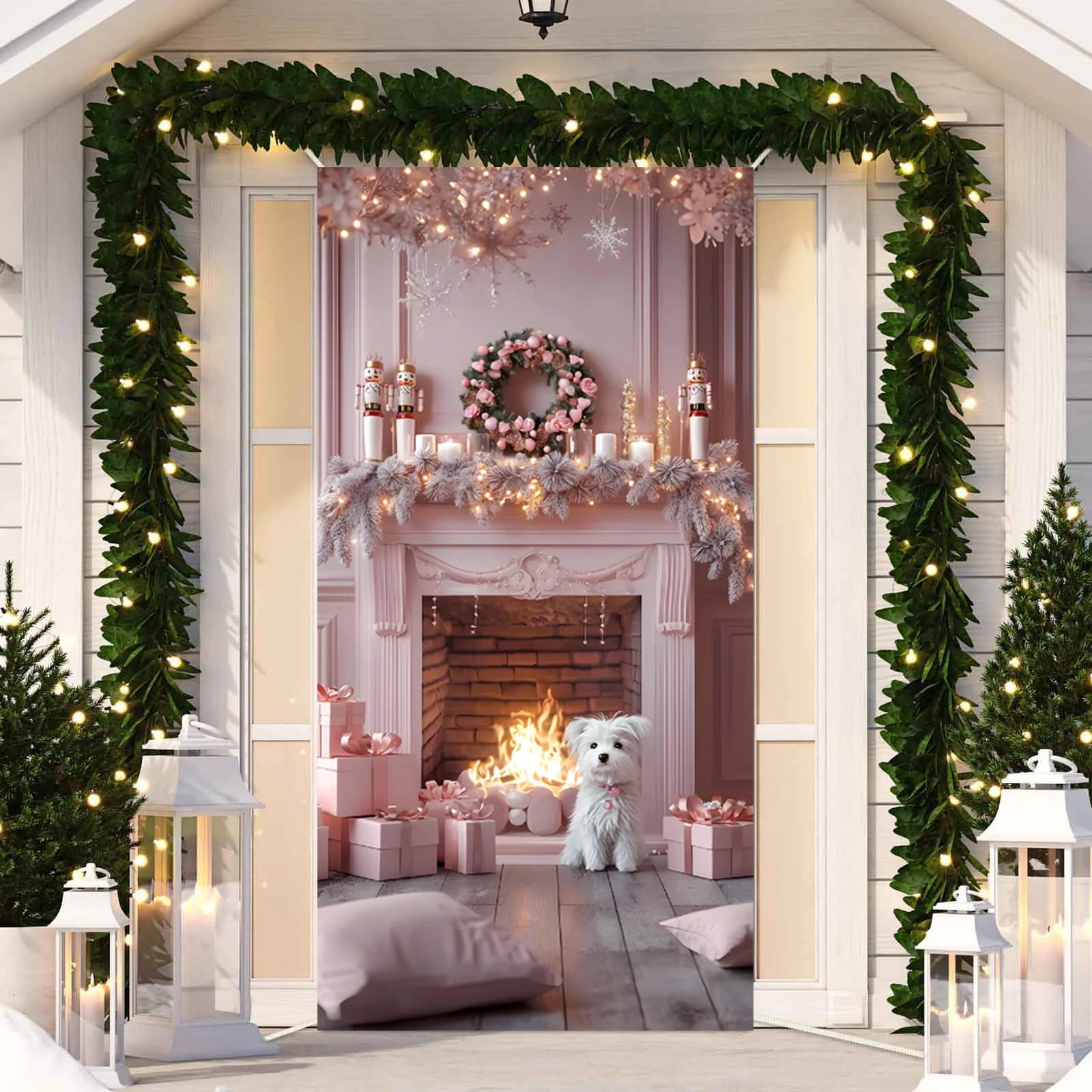 Cute Animals Theme New Year Christmas Decoration Dog Cat Snowman Gingerbread Man Door Cover Holiday Outdoor Winter Prop Gift