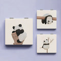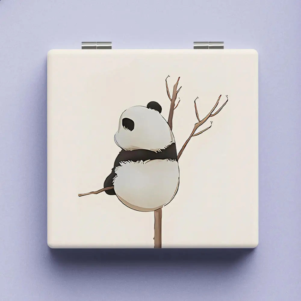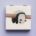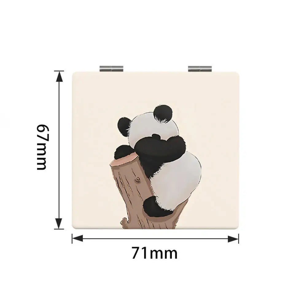 Cute Panda Pattern Makeup Mirror Double-Sided Mini Folding PU Mirror Cosmetic Tool Portable Square High-definition Mirror