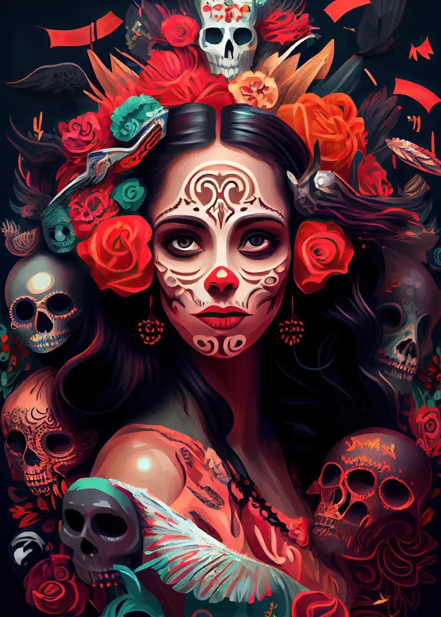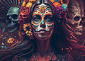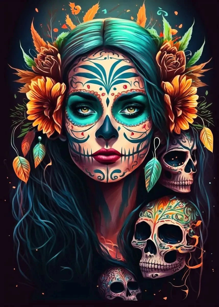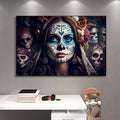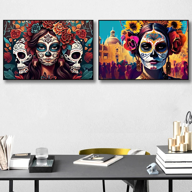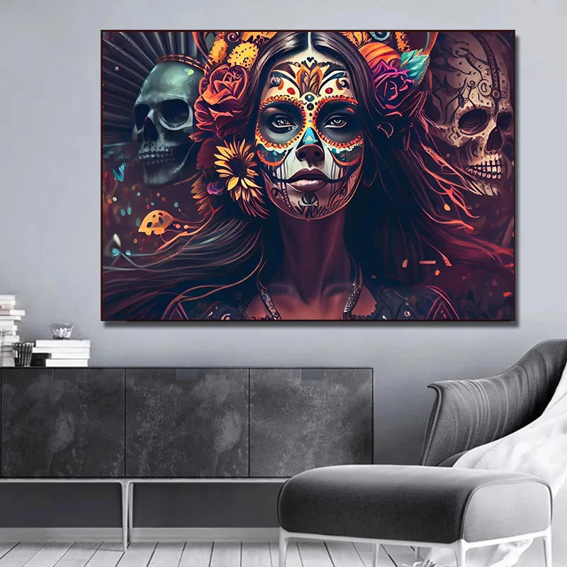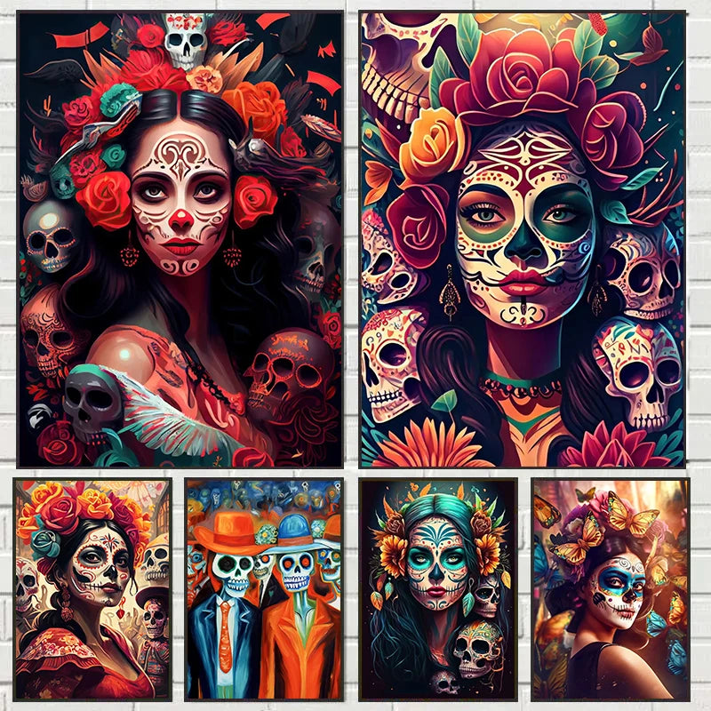 Day of The Dead Flowers and Beauty Skull Posters Prints Woman Halloween Canvas Painting Abstract Wall Art Picture Decoration