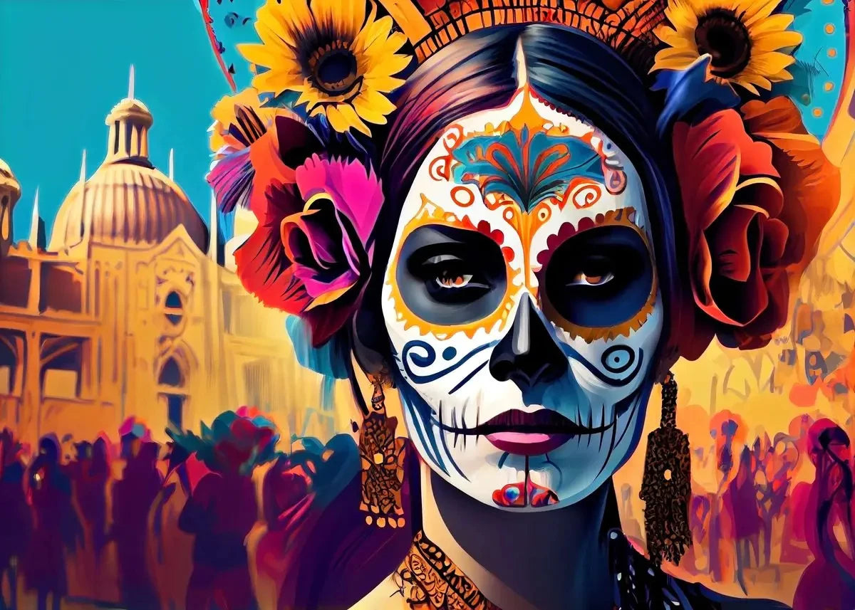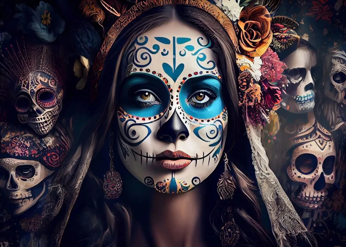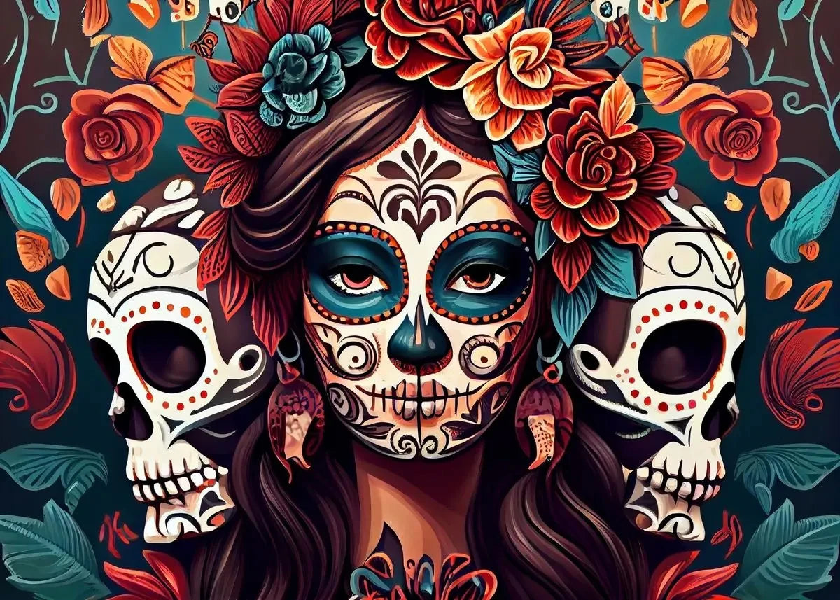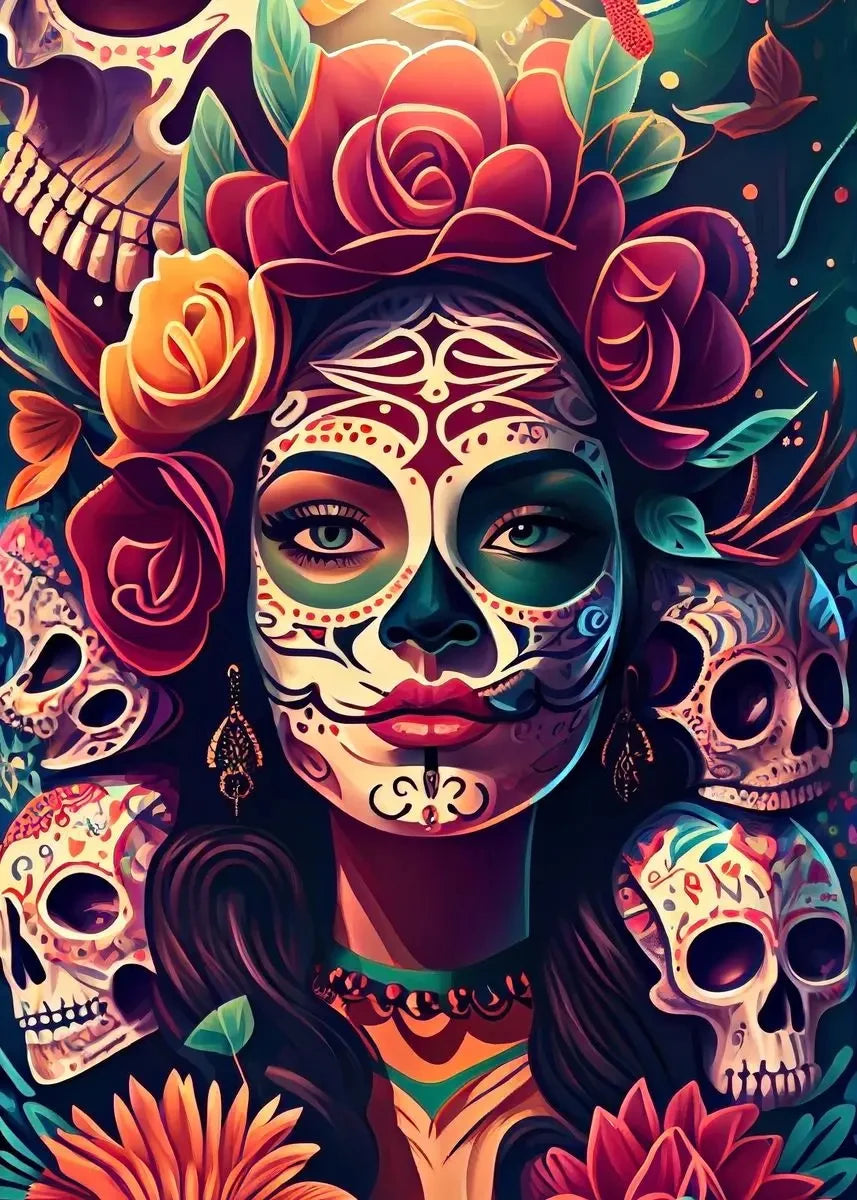Day of The Dead Flowers and Beauty Skull Posters Prints Woman Halloween Canvas Painting Abstract Wall Art Picture Decoration