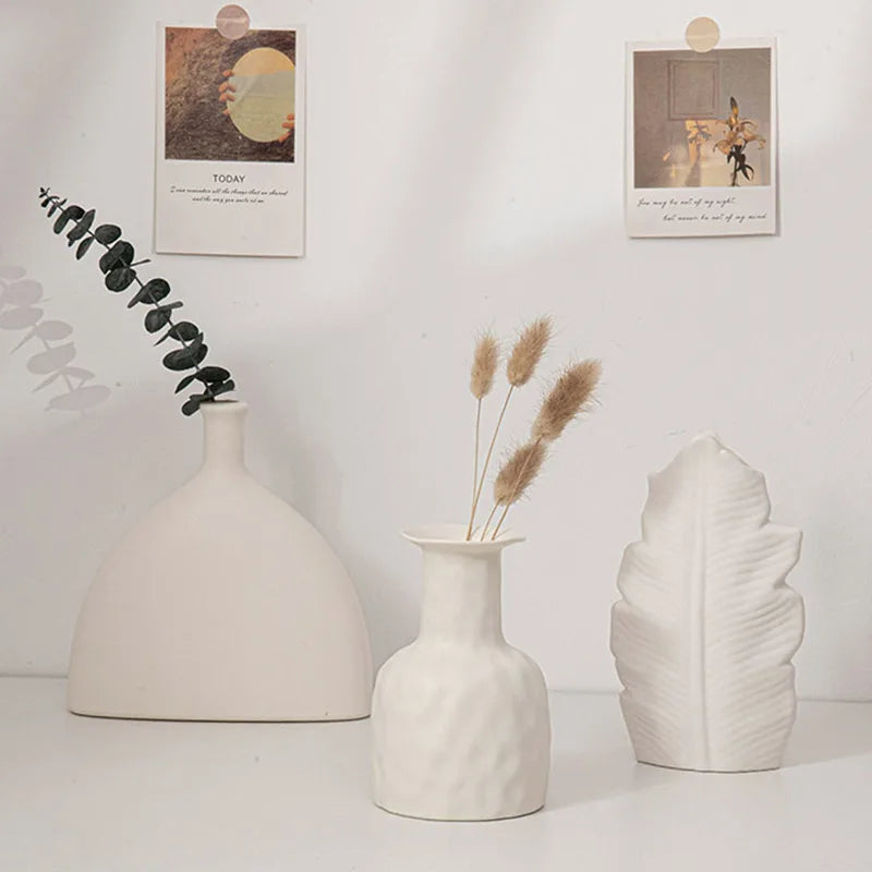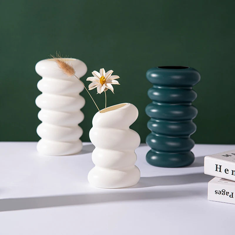 Decorative White Flower Bottle Modern Plastic Flower Vase Living Room Decoration Vase for Plant Desktop Ornament Wedding Decor