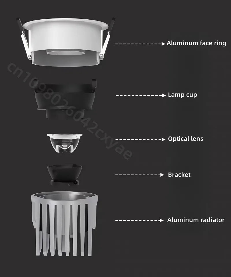 Dimmable LED downlights, anti-glare ceiling lights, AC85-265V LED spotlights, living room and kitchen indoor lighting bulbs