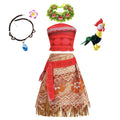 Disney Moana Dress for Kids Girls Princess Vaiana Cosplay Carnival Children Birthday Party Headwear Necklace Pet Pig Chicken Set