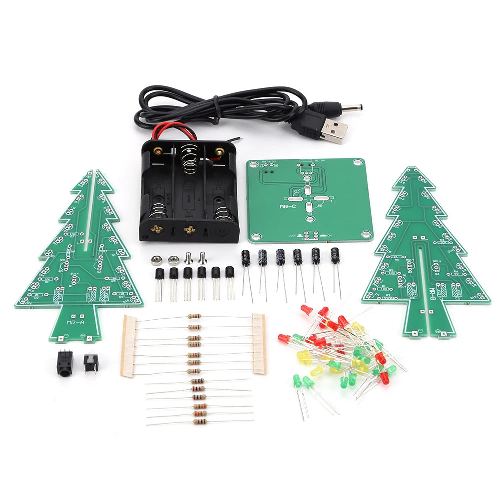 DIY 3D Christmas Tree Battery/USB Powered Soldering Practice Kit Easy Installation Flashing Light Christmas Tree for DIY Lovers