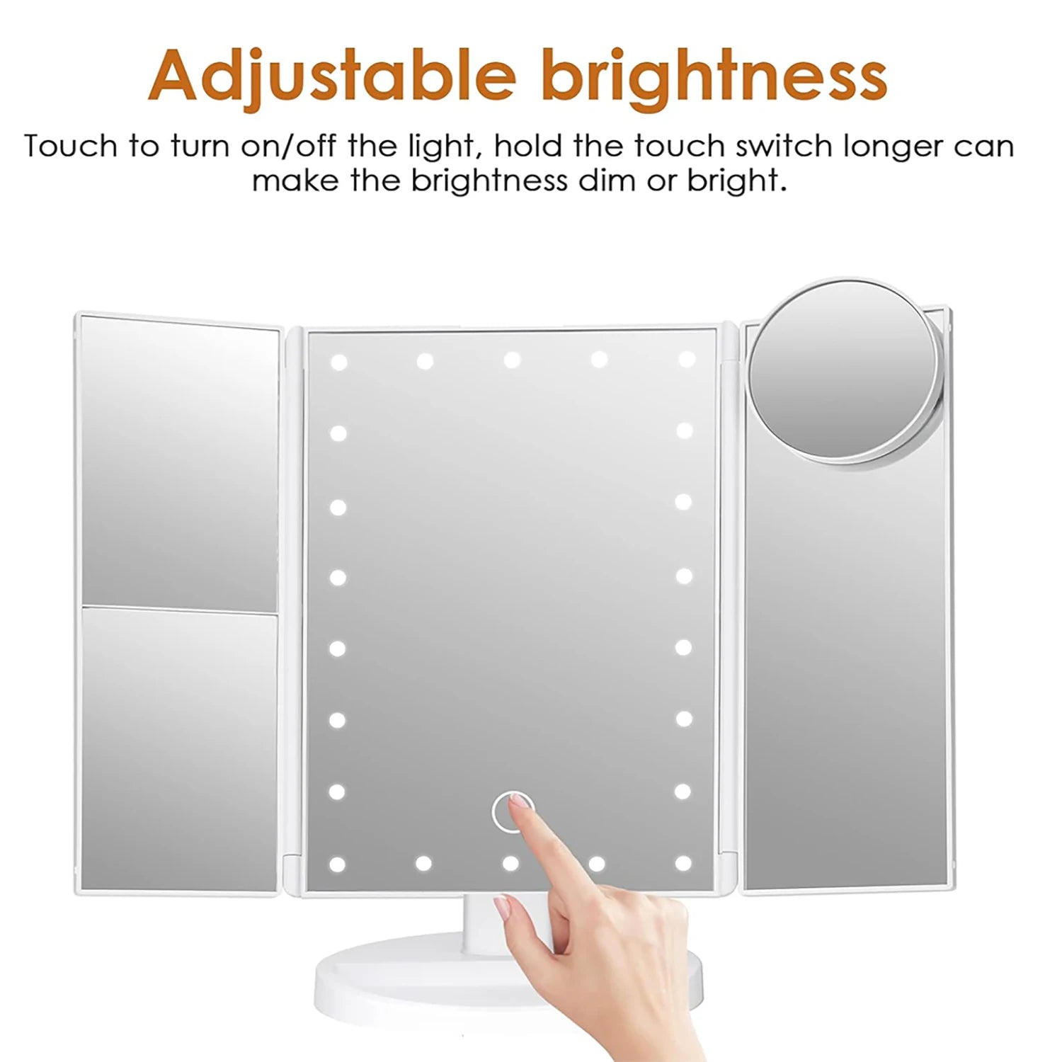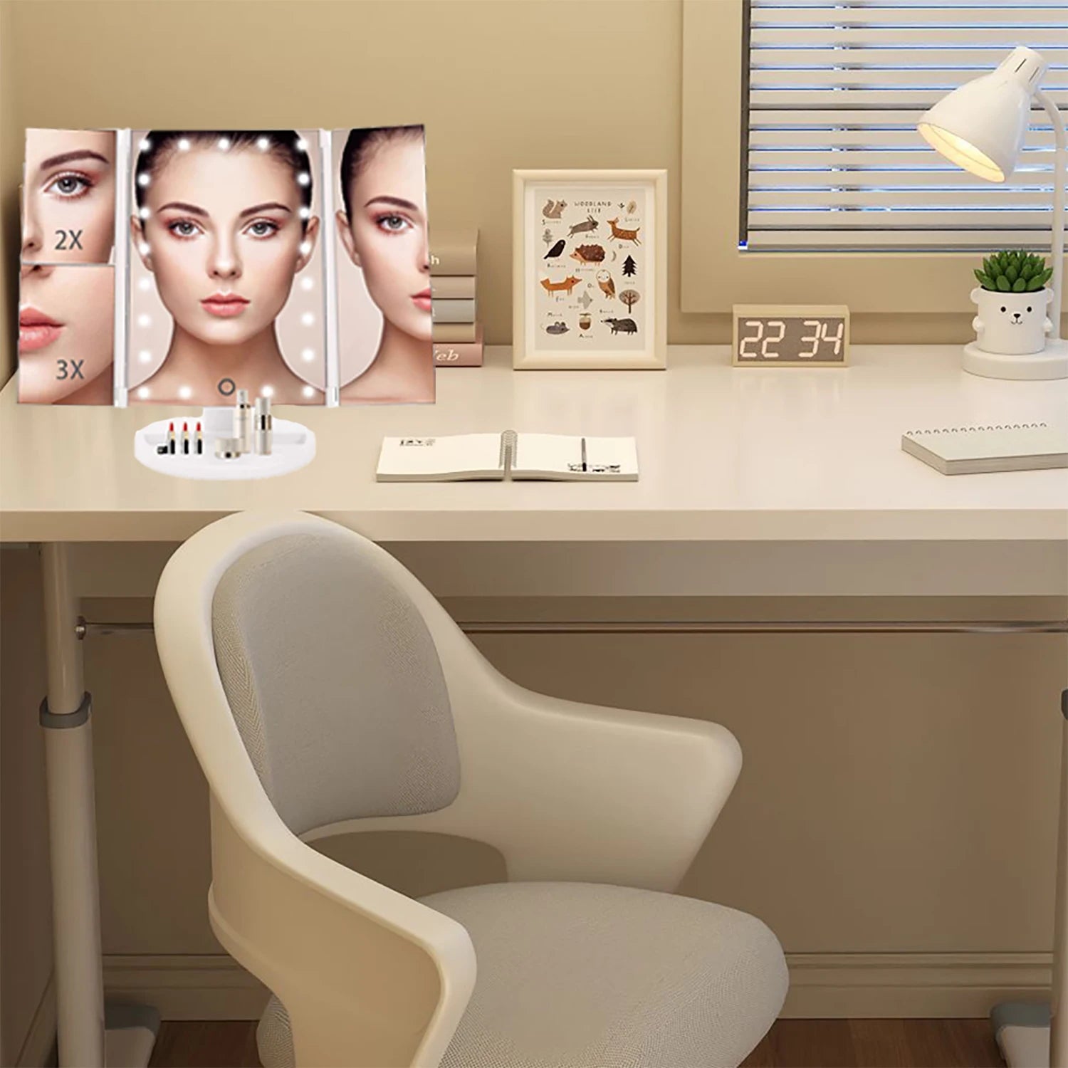 Fashionable foldable LED magnifying makeup mirror, desktop organizer mirror, a wonderful gift for Valentine's Day, birthday