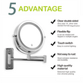 Folding Arm Extend Bathroom Mirror With LED Light 7 Inch Wall Mounted Double Side Smart Cosmetic Makeup Mirrors
