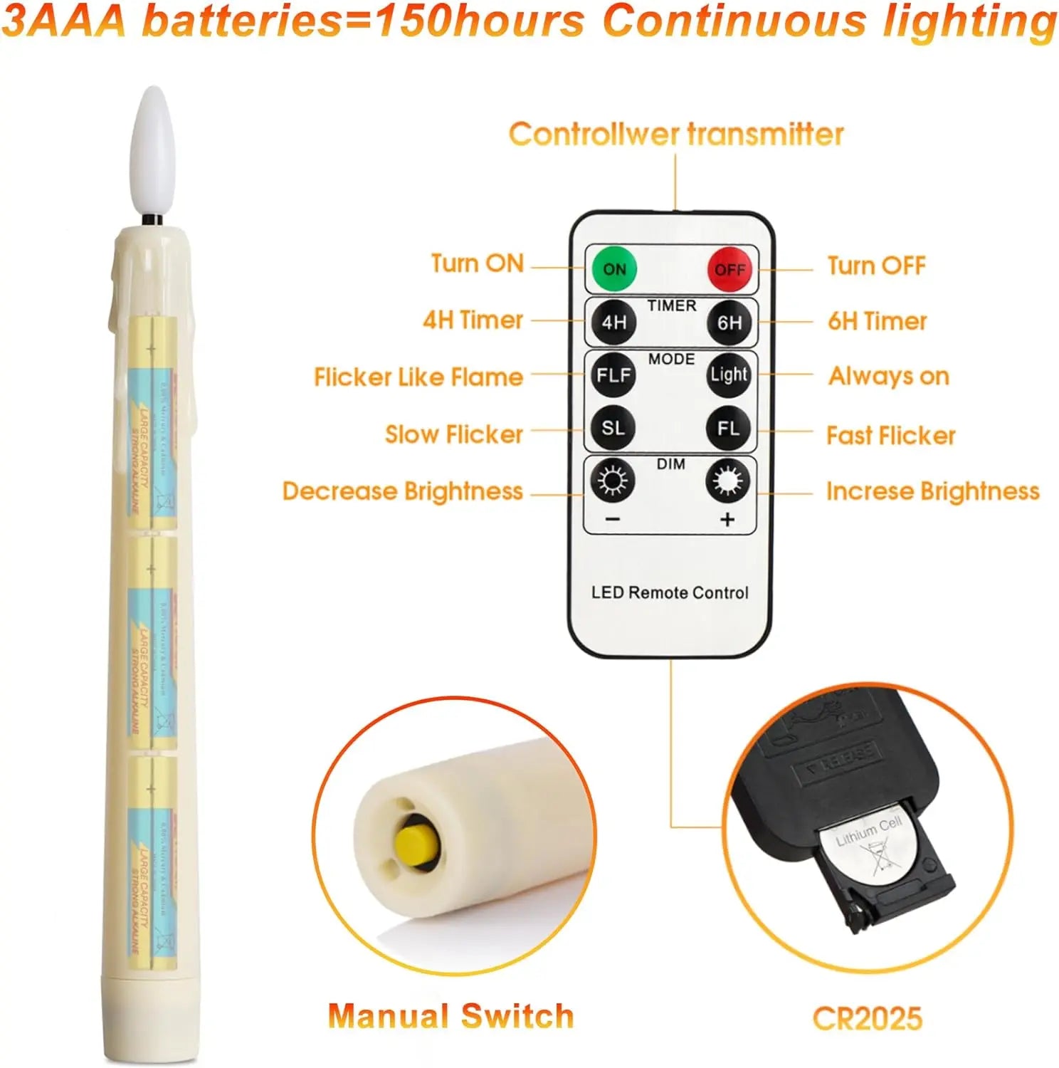 FPOO Flameless Candles Dinner Lighting Table Home Decoration Candle Light With Timer Remote Flickering Decorative Led Taper Lamp