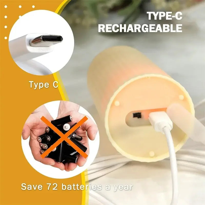 FPOO Rechargeable Led Candle By usb Remote Waterproof Pillar Candles for Wedding Camping Electric Flickering Flame Candle Light