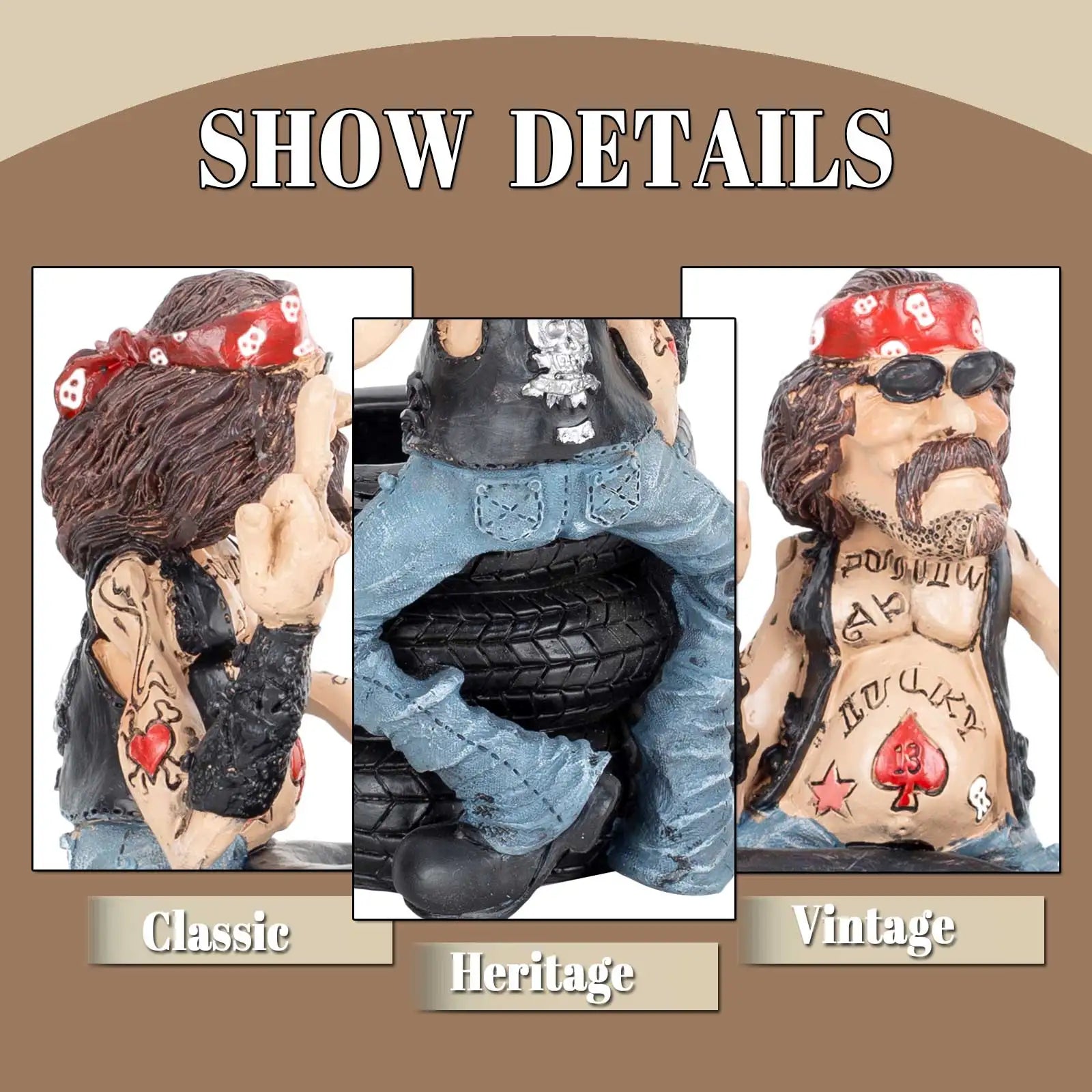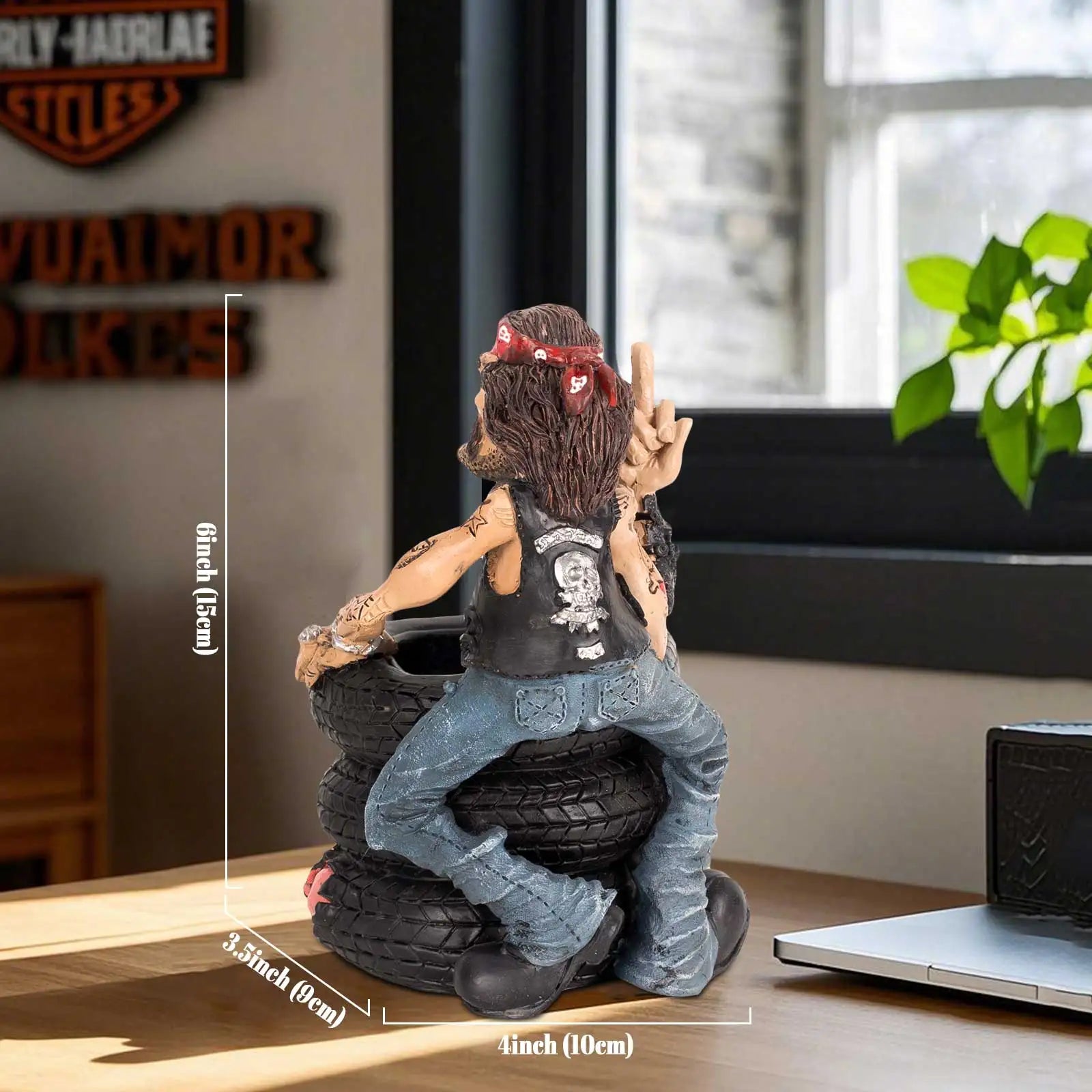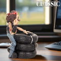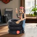 Funny Biker Figurine Sitting on Tires, Middle Finger Gesture Resin Statue, Desk Shelf Decor, Man Cave Motorcycle Gift Ornament