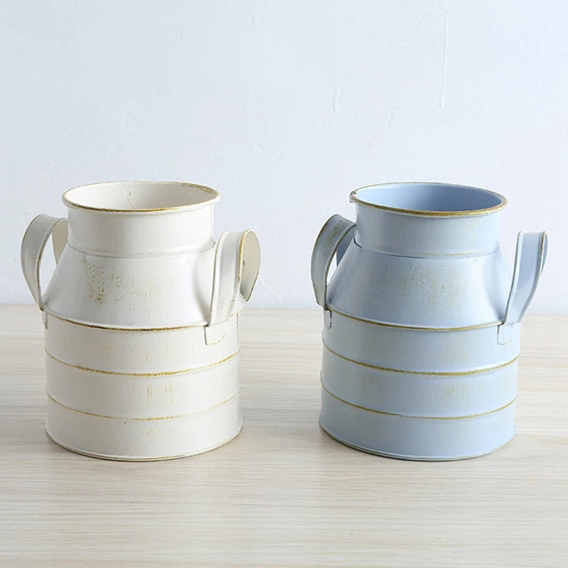 Garden Plants Flower Vase Iron Bucket Metal Vase Craft Holder Home Decor Galvanized Finish Balcony Country Rustic Desktop Bucket
