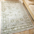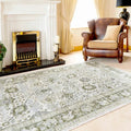 Green Traditional Oriental Large Area Rugs Living Room Carpet Sage Grey Bordered Floral Mat Bedroom Hallway Runner Non-Slip Rug