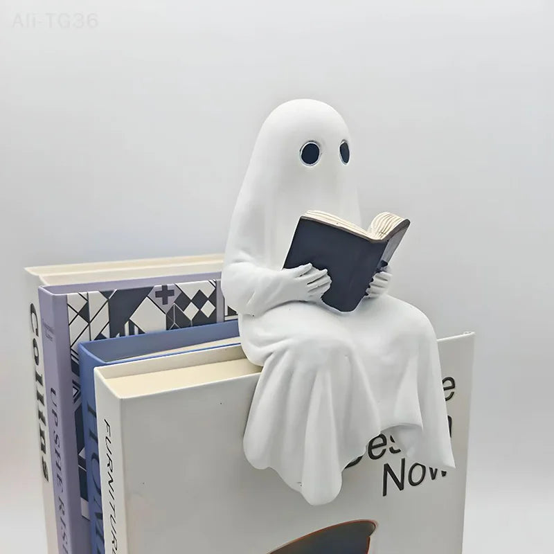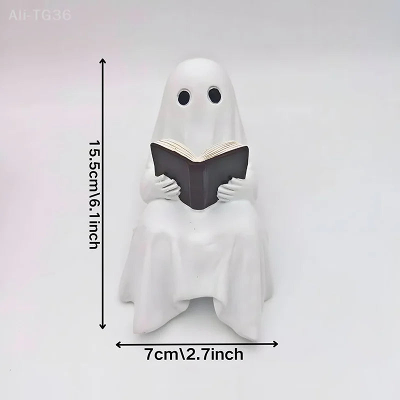 Halloween Ghost Figurine Ghost Reading Statue Resin Sitting Ghosts Figurine Reading A Book For Halloween Bookshelf Office Decor