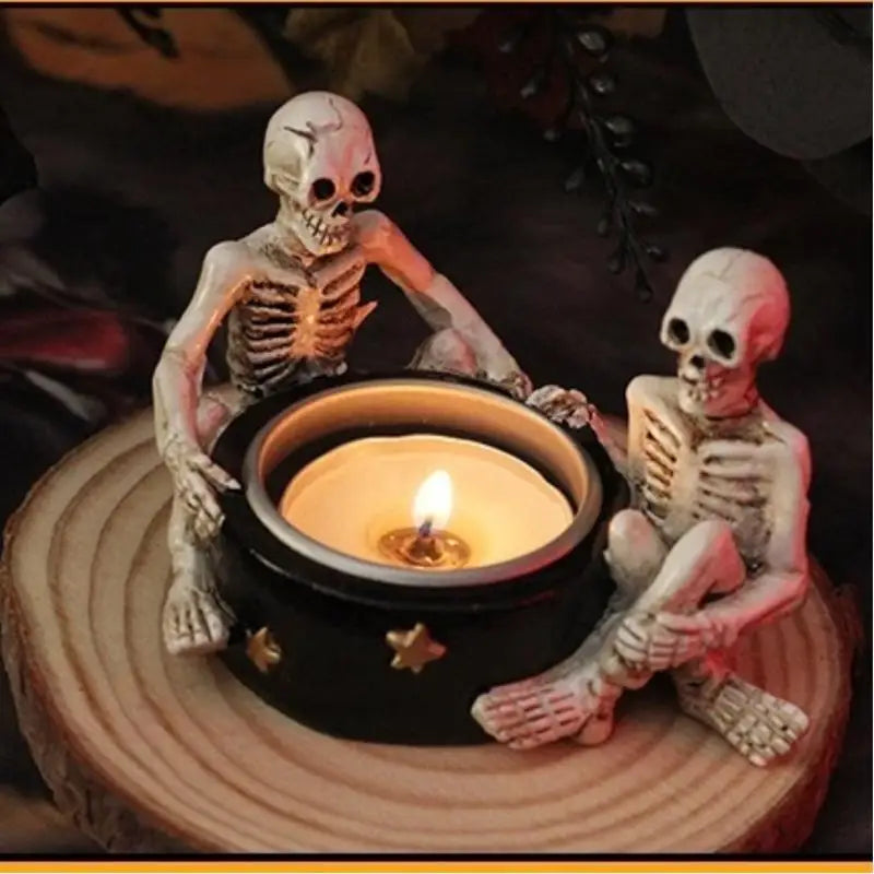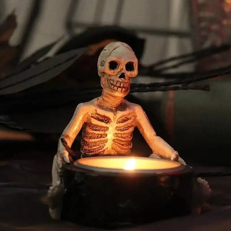 Halloween Skull Candle Holder Retro Skull Candle Holder Tea Lamp Cup Home Halloween Party Decoration Halloween Desktop Decor