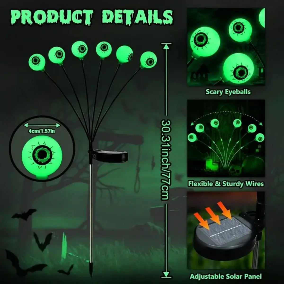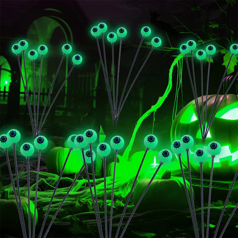 Halloween solar LED eye light decoration - green luminous eye post, flexible firefly effect, eerie outdoor decoration