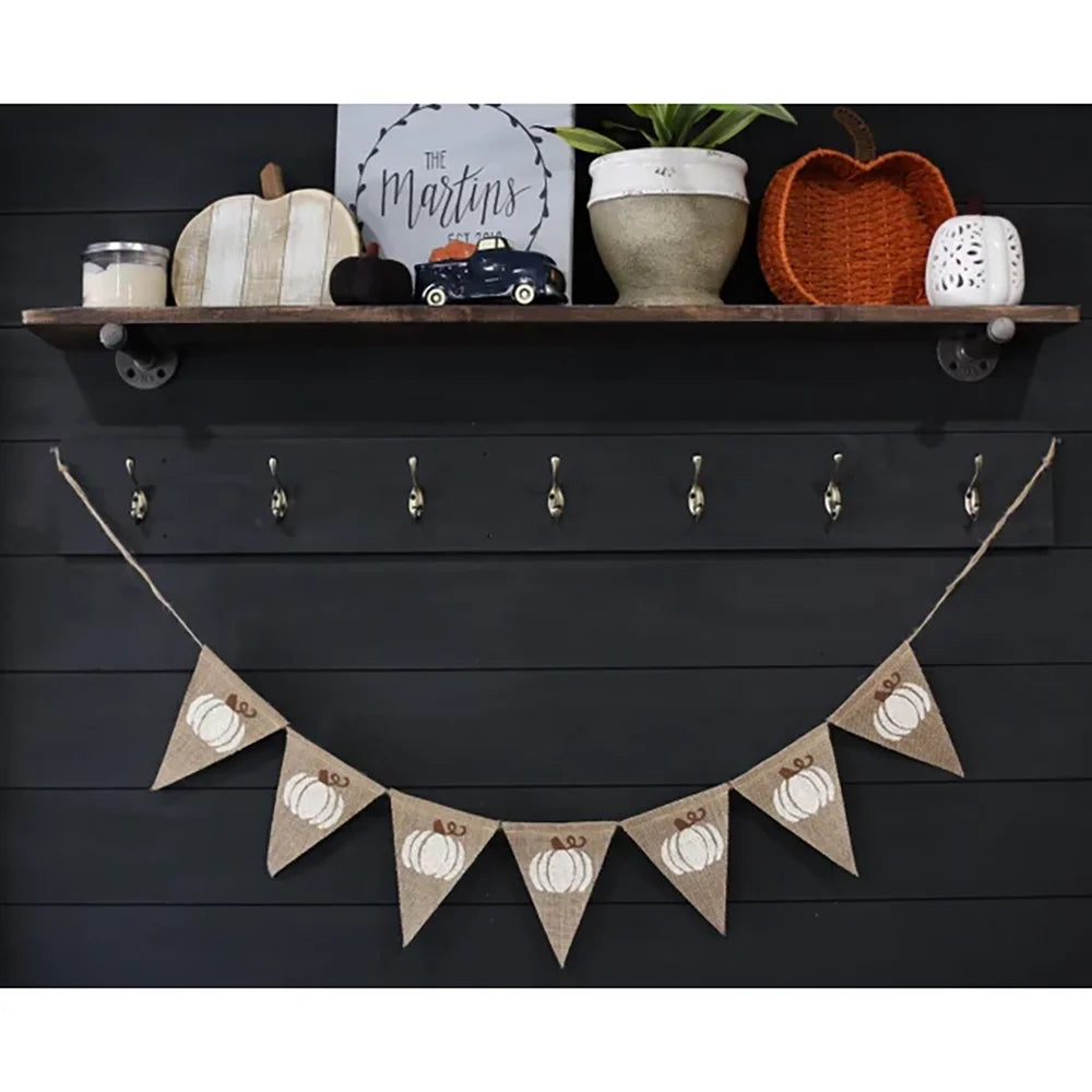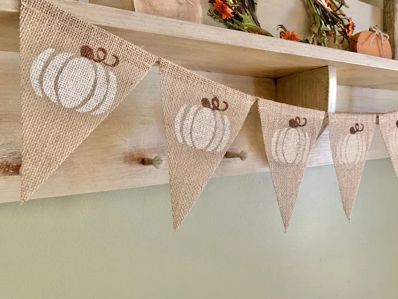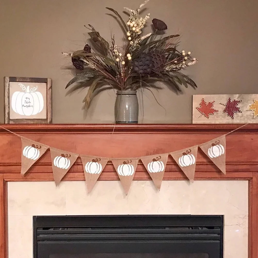 Halloween White Pumpkin Triangular Flag Banner Fall Holiday Fireplace Decor Spooky Season Home Accessories Housewarming Gift