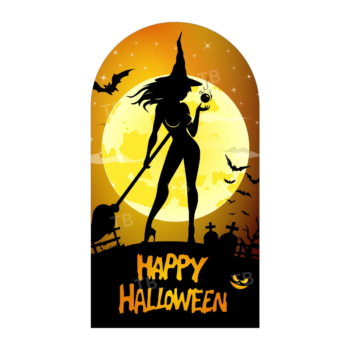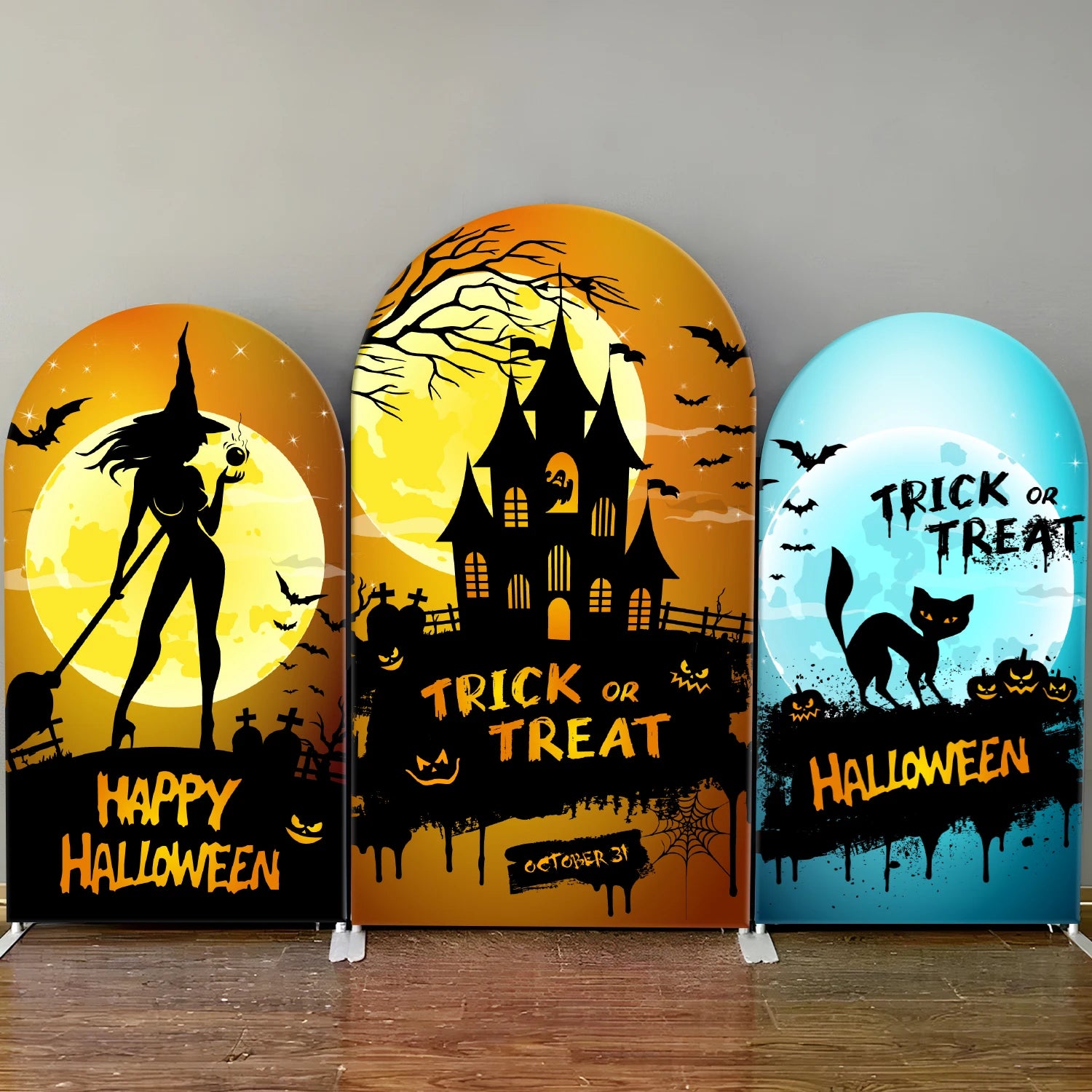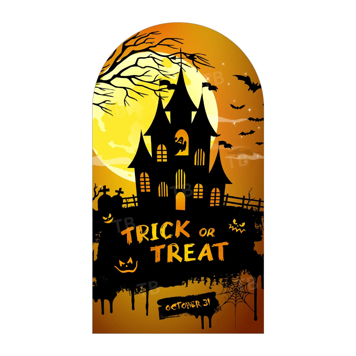 Happy Halloween Theme Arch Backdrop Cover Trick or Treat Festival Party Decoration Witch Castles Bat Photography Background Wall