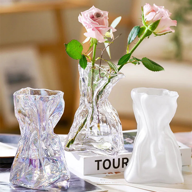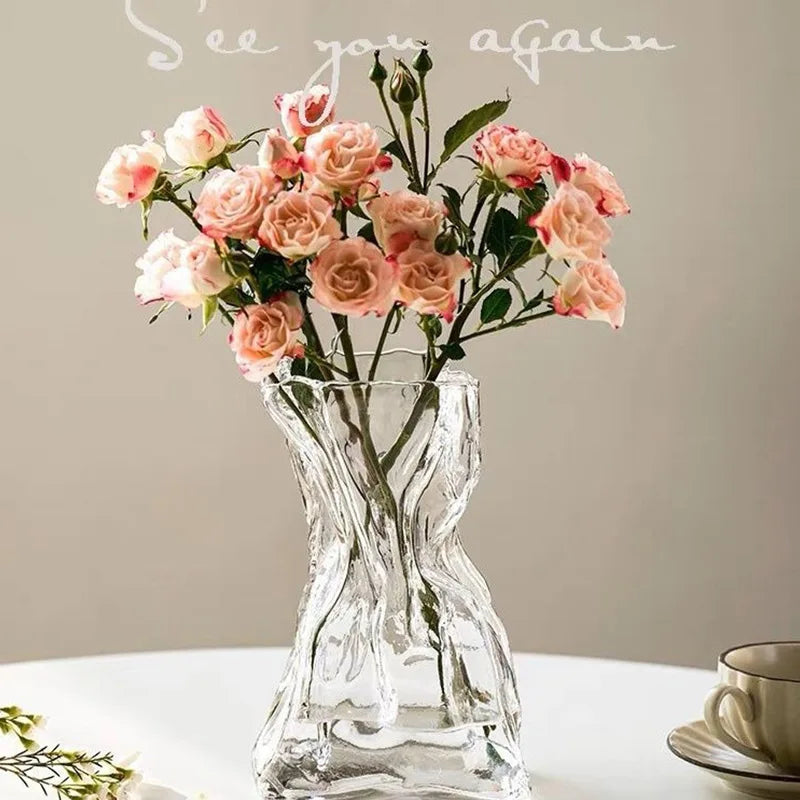 Irregular Transparent Glass Flower Vase 23cm*9cm Big Flower Bottle Tabletop Hydroponic Pot Home Living Room Table Decorations