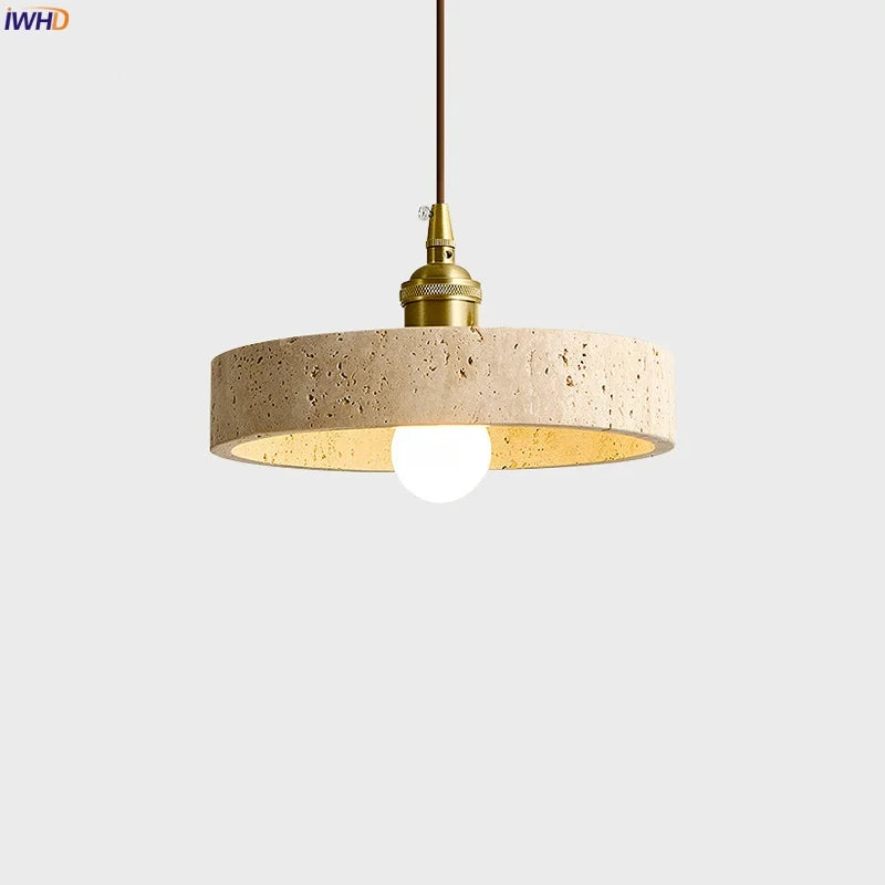 IWHD Japanese Vintage LED Hanging Lamps Yellow Travertine Bedroom Dining Room Table Lighting Interior Pendant Light Hanglampen