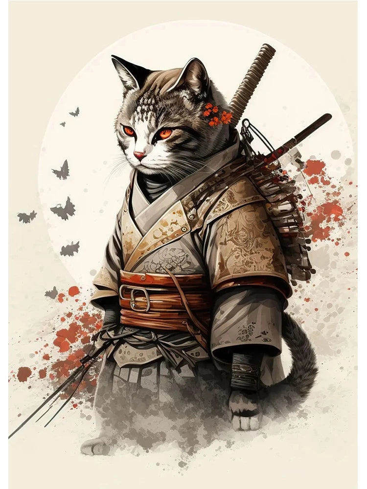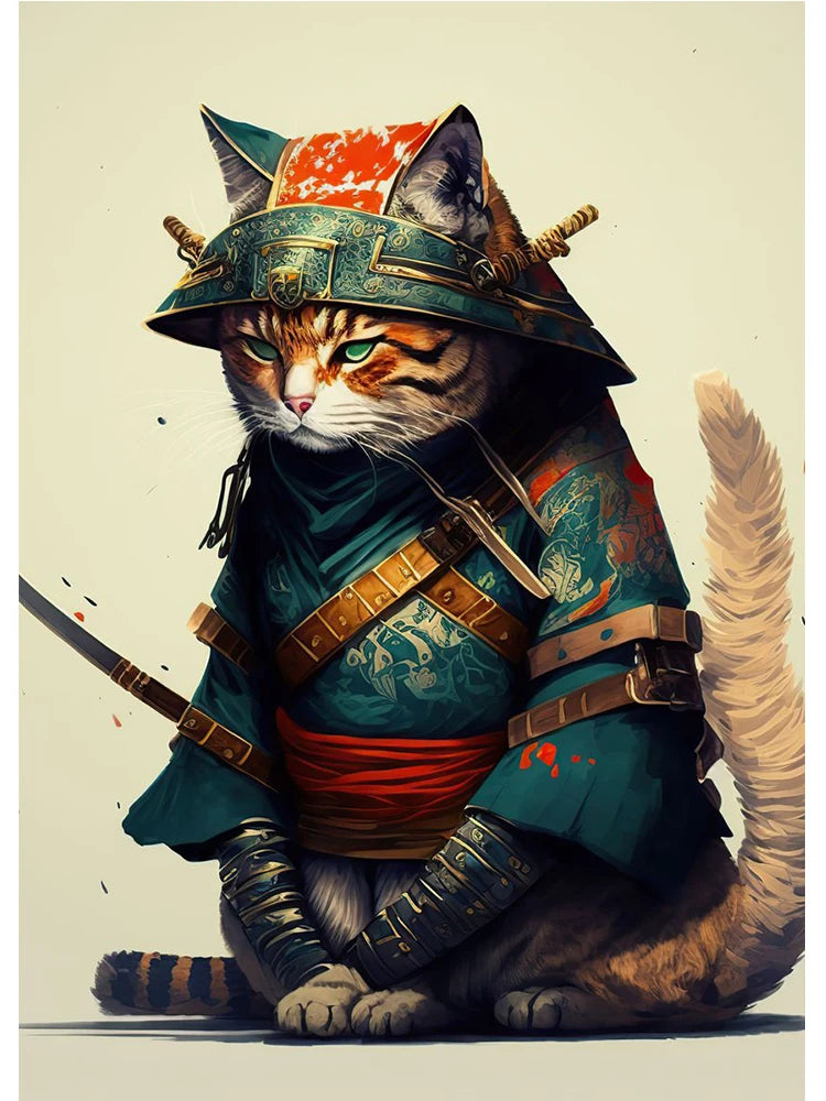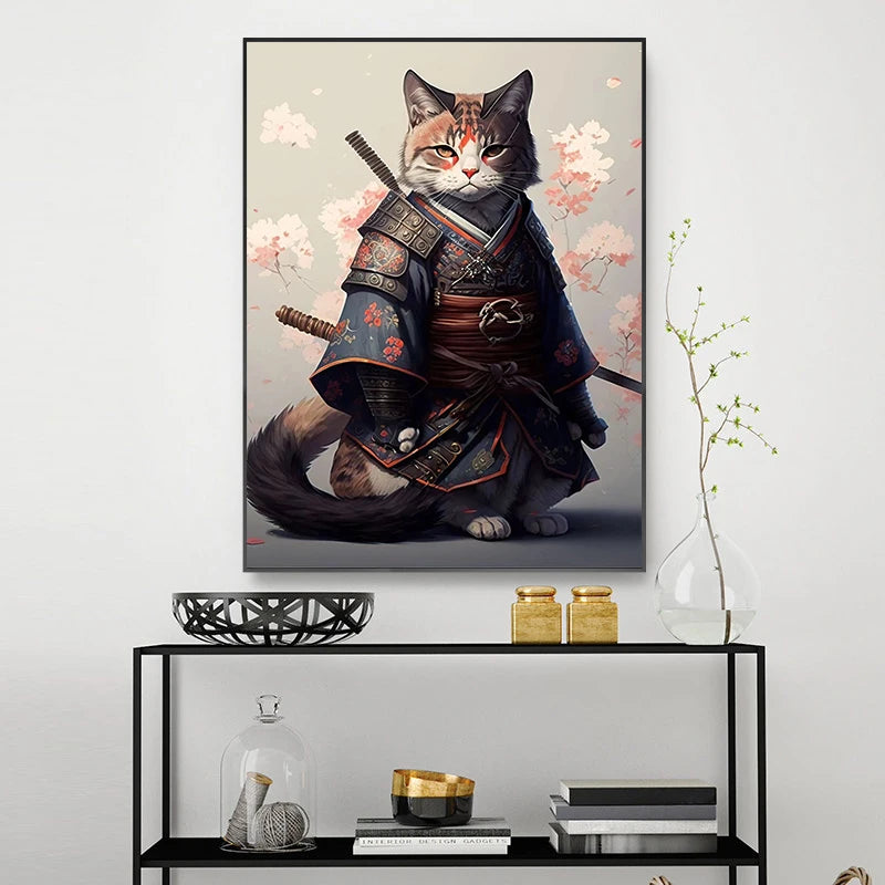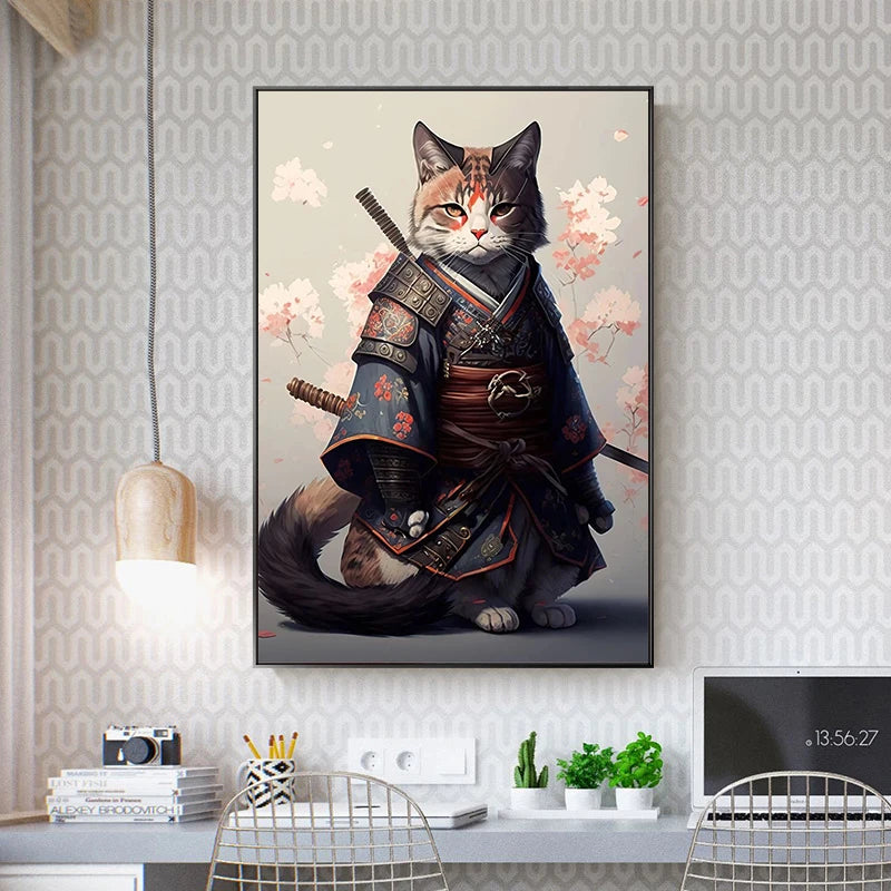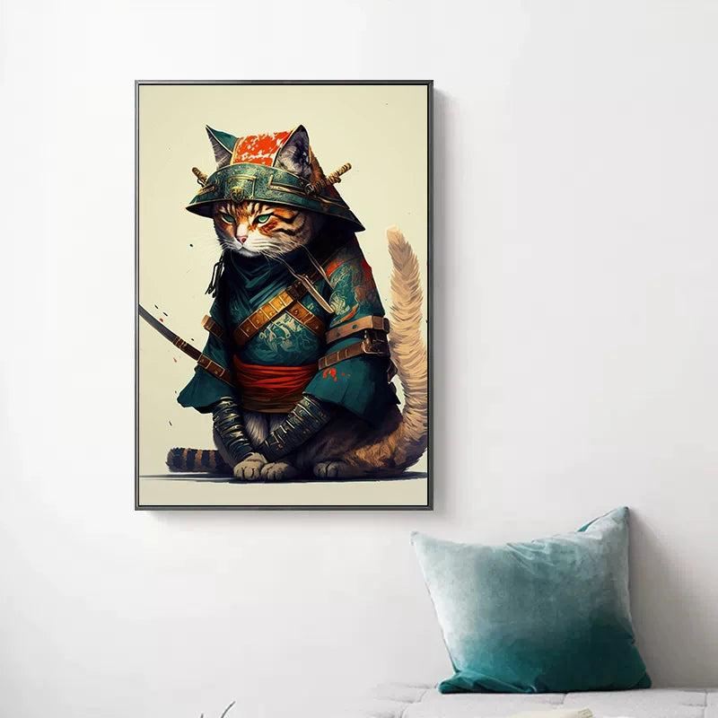 Japanese Cat Samurai Portrait Poster Print Canvas Painting Cute Animal Wall Art Picture For Living Room Home Decor Cuadros