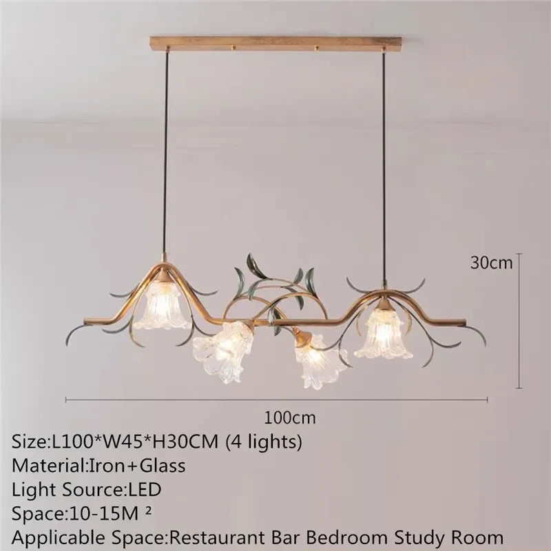 KERWIN American Pastoral Chandelier French Creativity Flower Dining Room Bar Counter Bedroom Villa Home Decoration Pendant Lamp