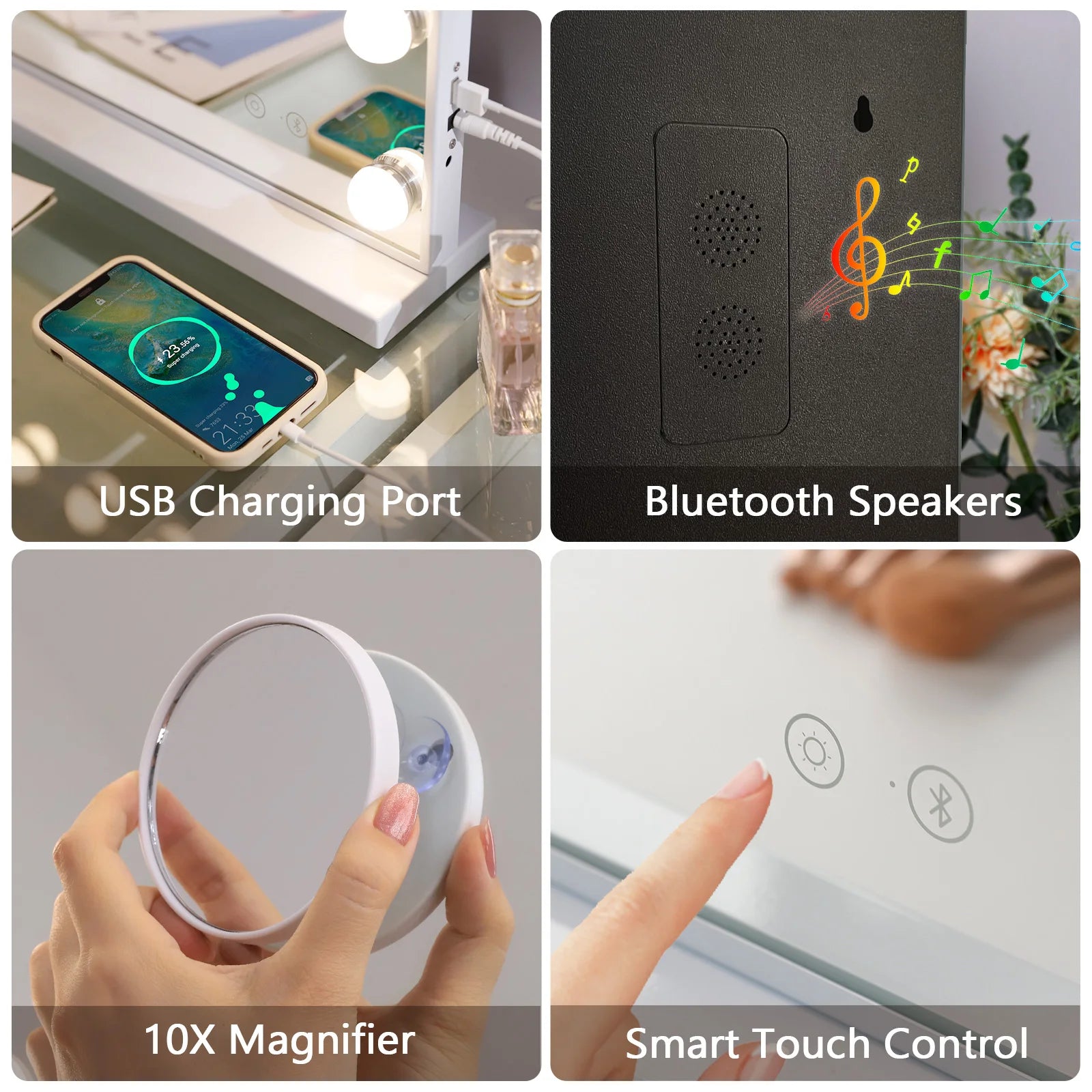 Large Bluetooth Vanity Mirror Makeup Mirror with Lights Hollywood Mirror Touchscreen Control Cosmetic Mirrors with 15 LED Bulbs