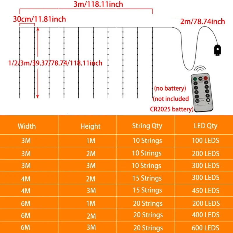 LED Curtain String Light Decoration USB Lamp 8 Mode for Home Halloween Christmas Party New Year Wedding Navidad 2025 Ornaments