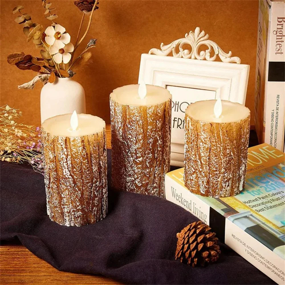 LED Electronic Candle Light Dancing Swinging Wick LED Pine Bark Candle With Remote Control for Wedding Bar Home Party Decoration