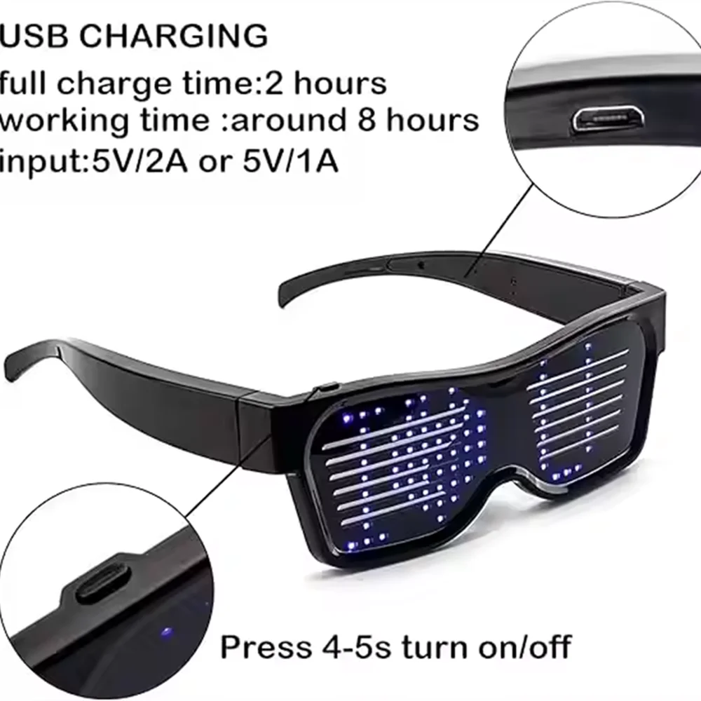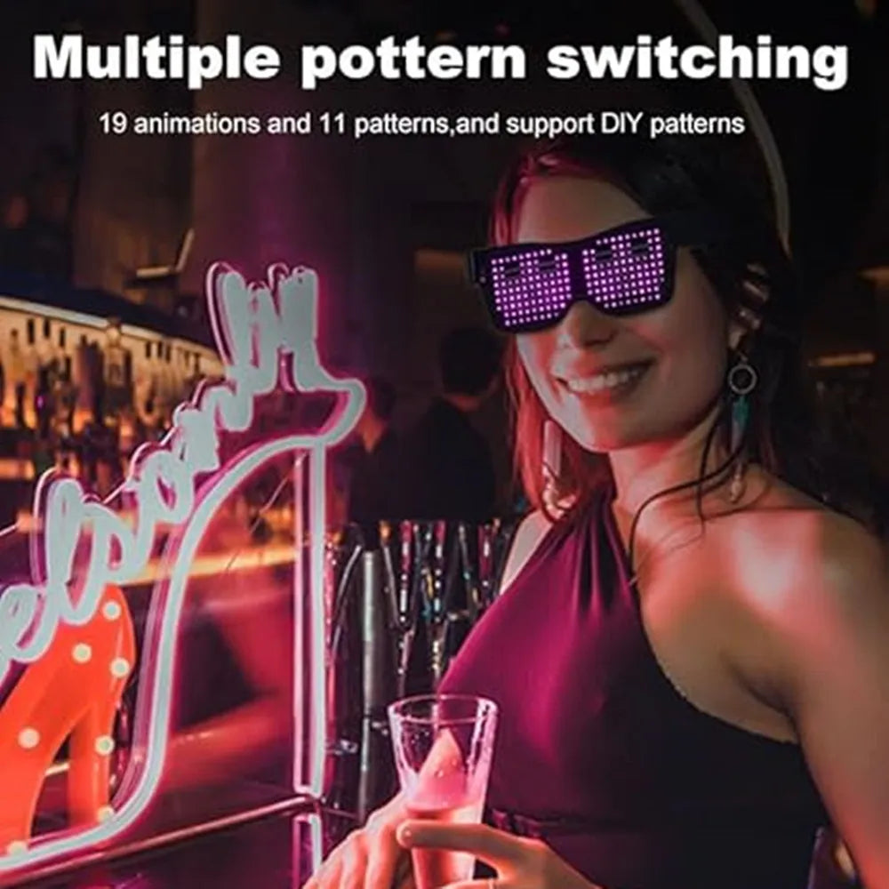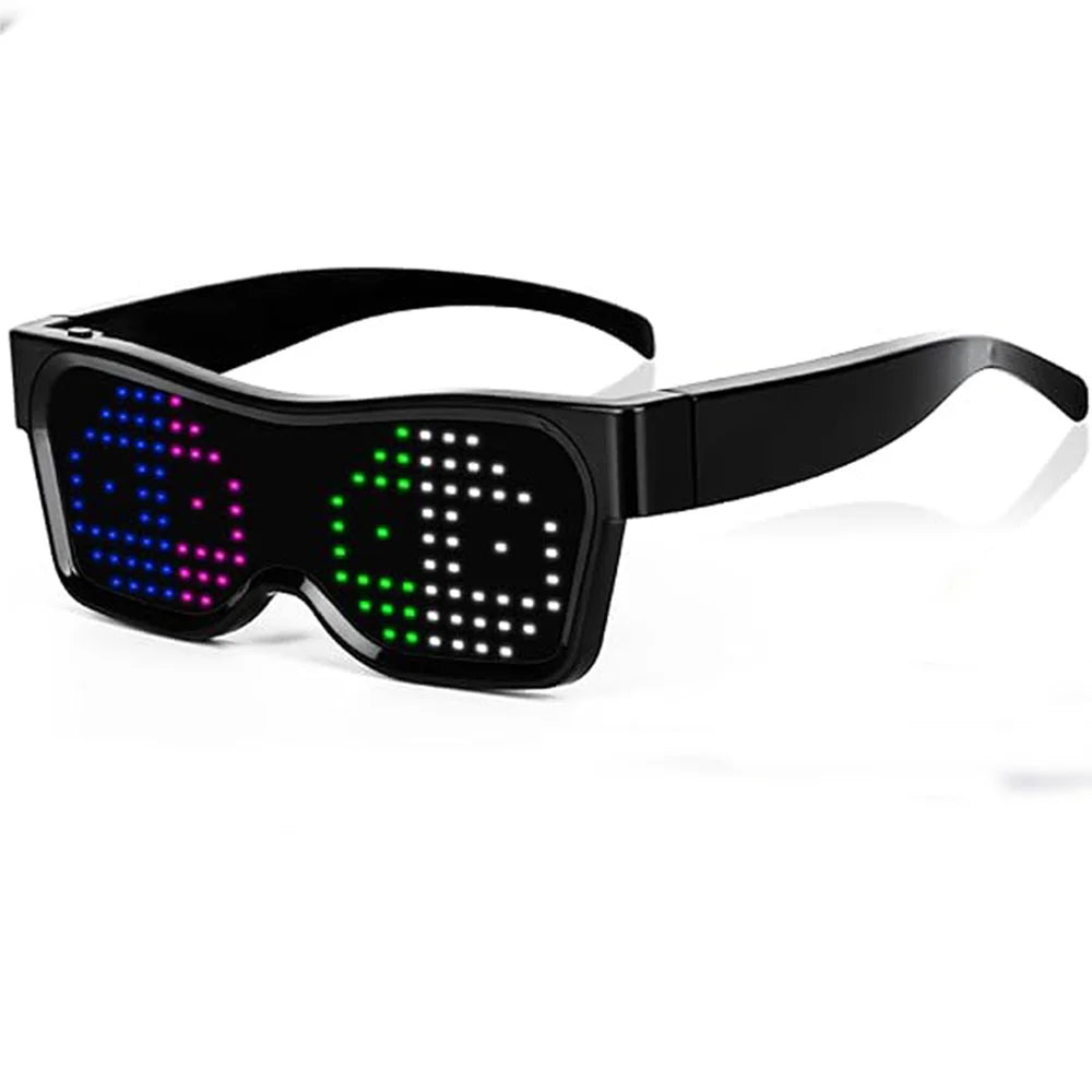LED Glasses, Bluetooth APP Connected LED Display Smart Glasses USB Rechargeable DIY Funky Glasses for Party Club DJ Halloween
