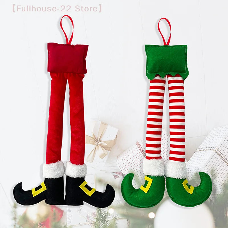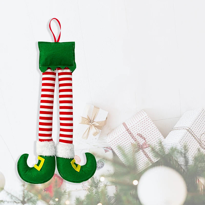 【MAX-22】1Pcs Christmas Striped Red Elf Leg Hanging Tree Ornament Christmas Elf Foot Clip Leg Decor Car Door Hanging Decoration