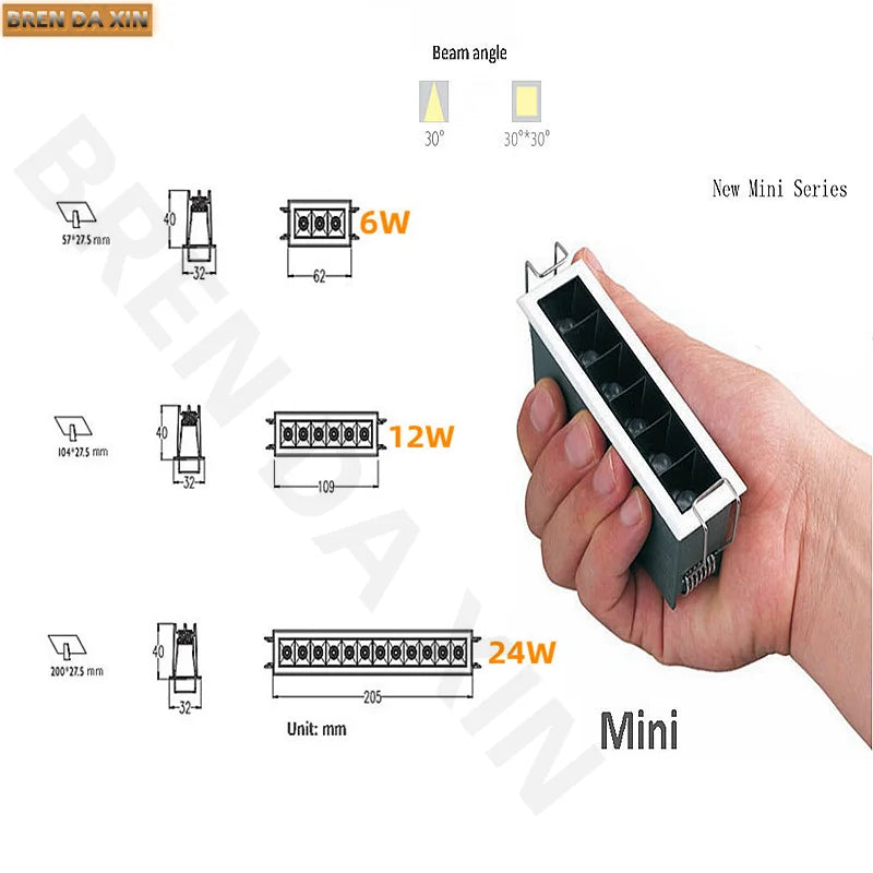 Mini Dimmable LED Linear Light 6W12W24W Grille Light COB Recessed Down Light Spot Light Indoor linear Lighting bulb