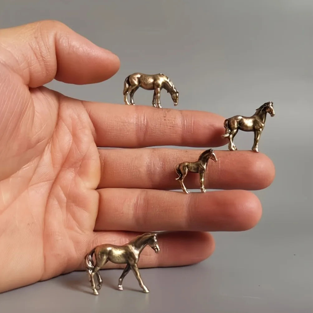 Miniature Antique Brass Long Tail Horse Figurines Feng Shui Ornament Copper Zodiac Animal Mini Desktop Crafts Home Decor
