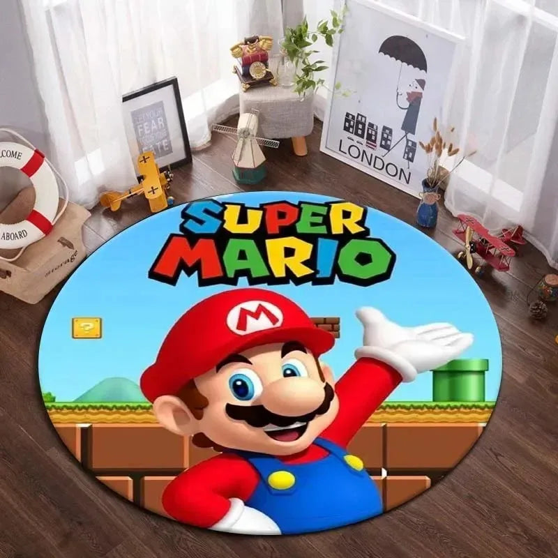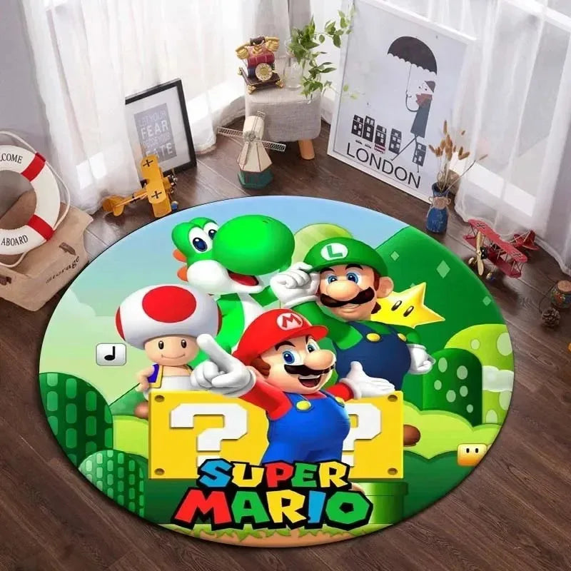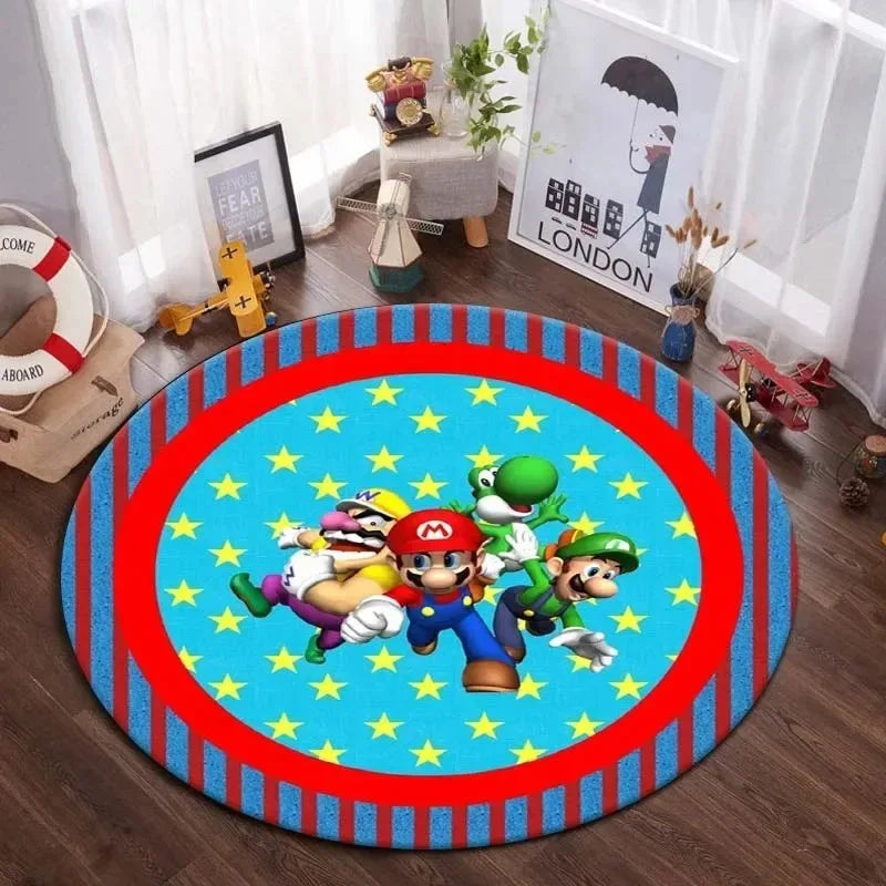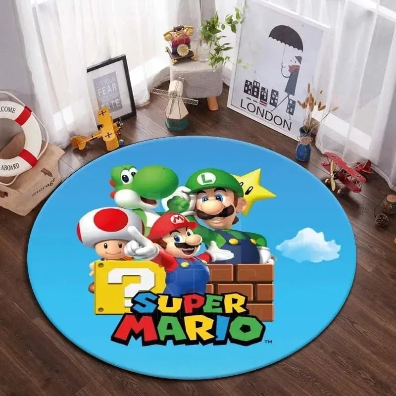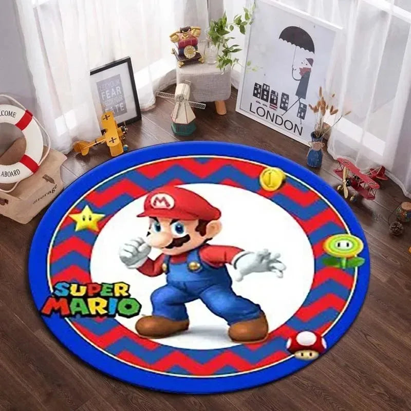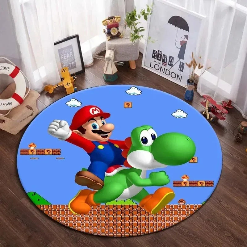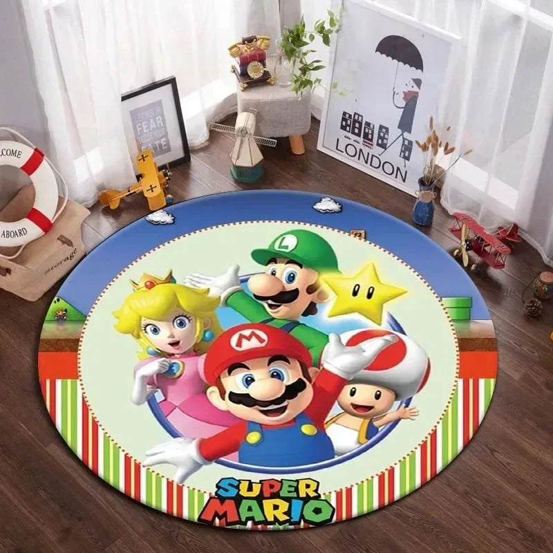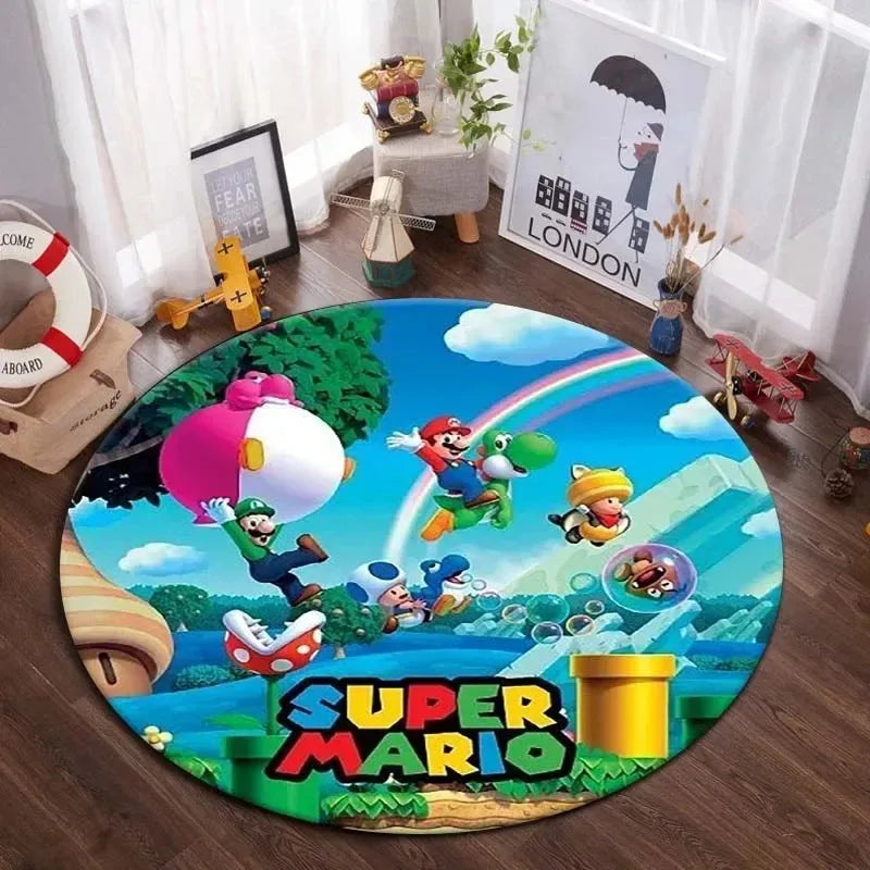 MINISO Apanese Anime Super Mario Carpet Floor Mat Crawling Soft Rug Children Game Round Non-slip Rugs Home Bedroom Decoration
