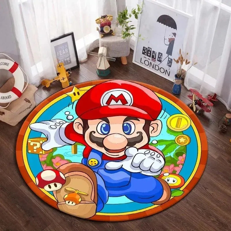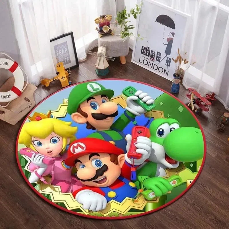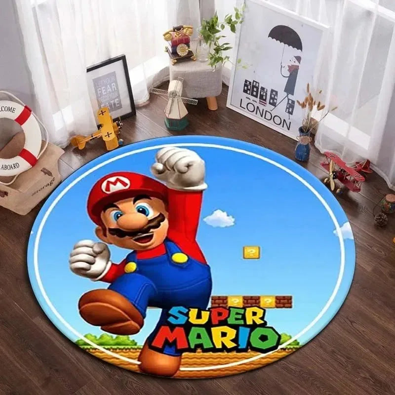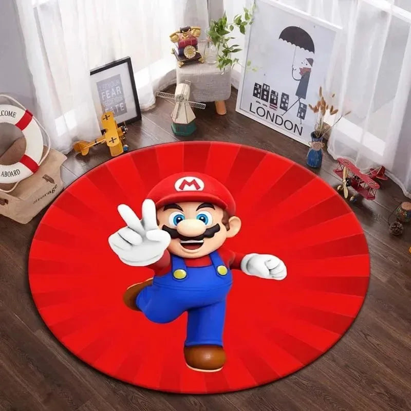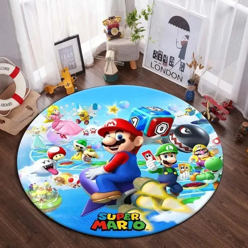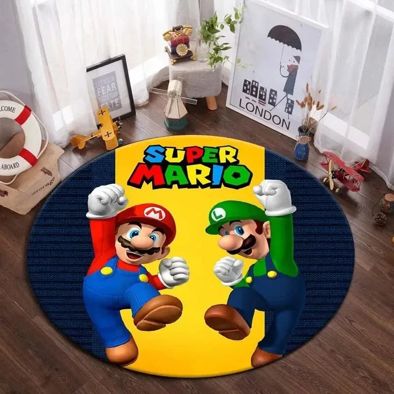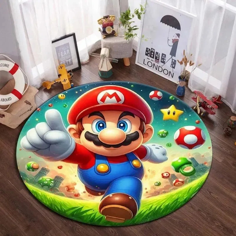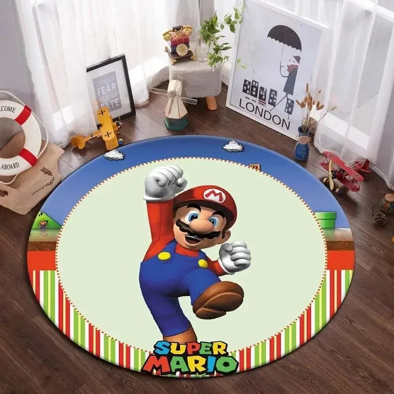 MINISO Apanese Anime Super Mario Carpet Floor Mat Crawling Soft Rug Children Game Round Non-slip Rugs Home Bedroom Decoration