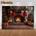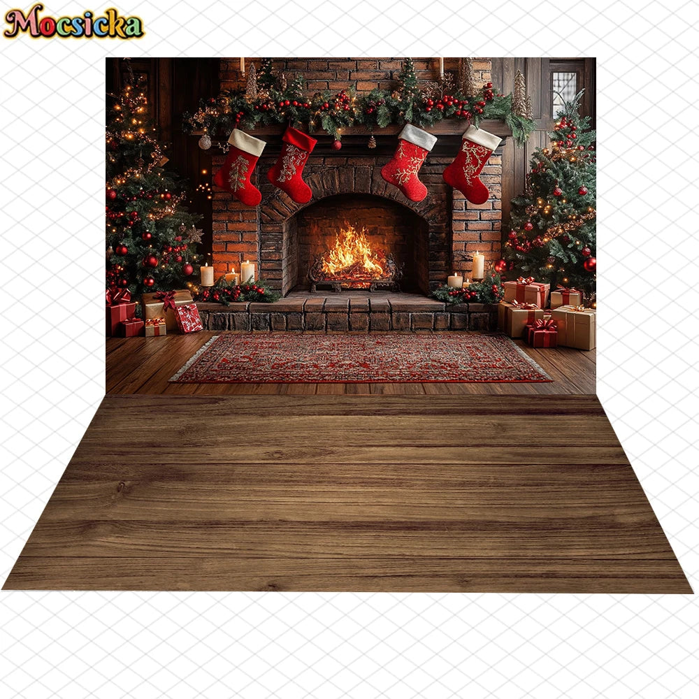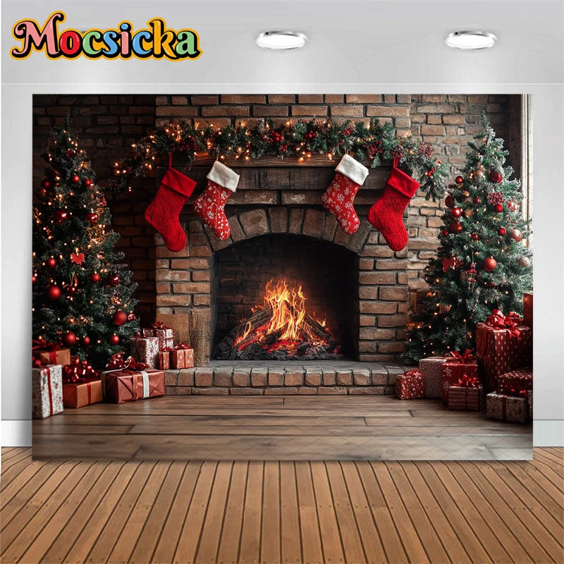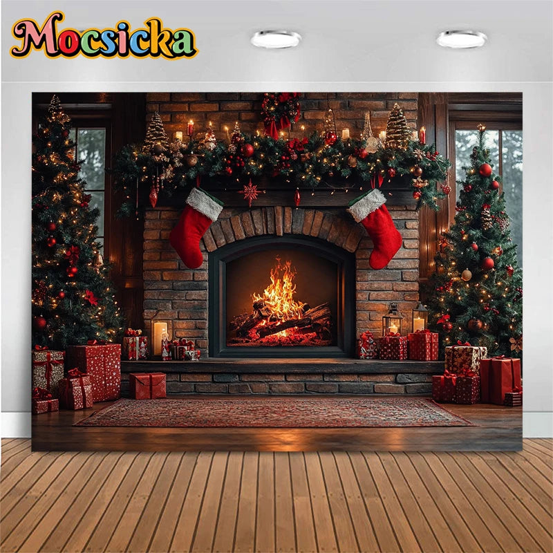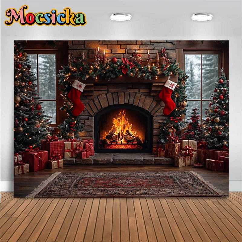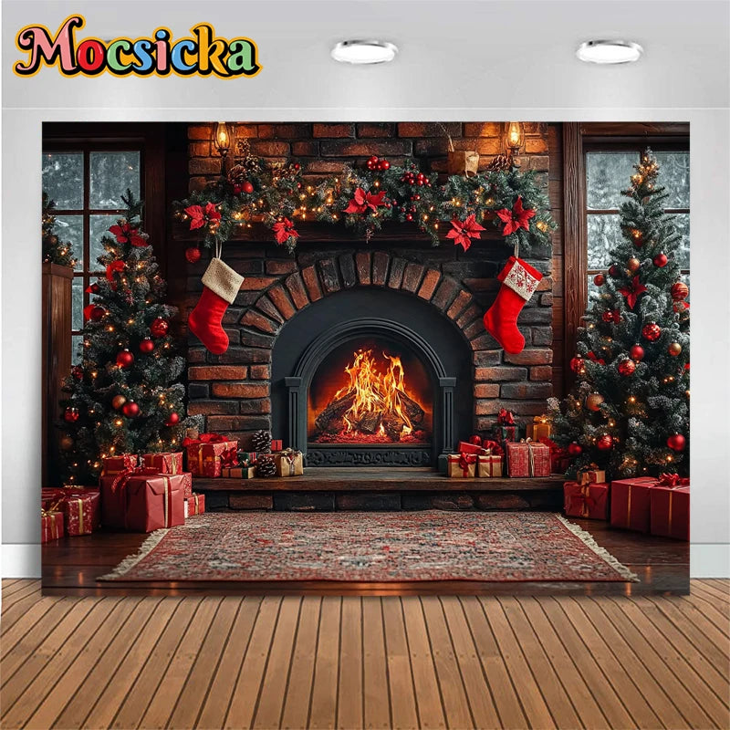 Mocsicka Photography Background Home Christmas Tree Fireplace Decors Child Family Holiday Party Backdrops Shooting Studio Banner