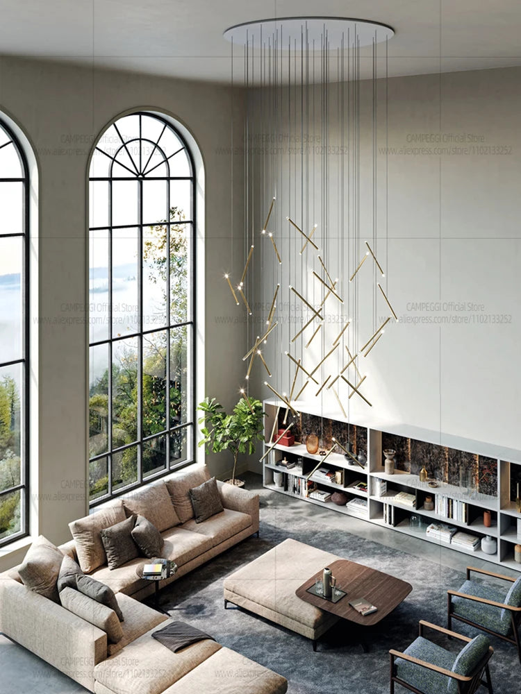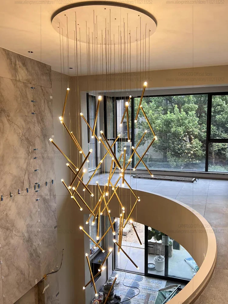 Modern Chandelier Luster Lights For Stair Hall Dining Living Room Duplex Building Indoor Lighting Fixture Staircase Chandelier