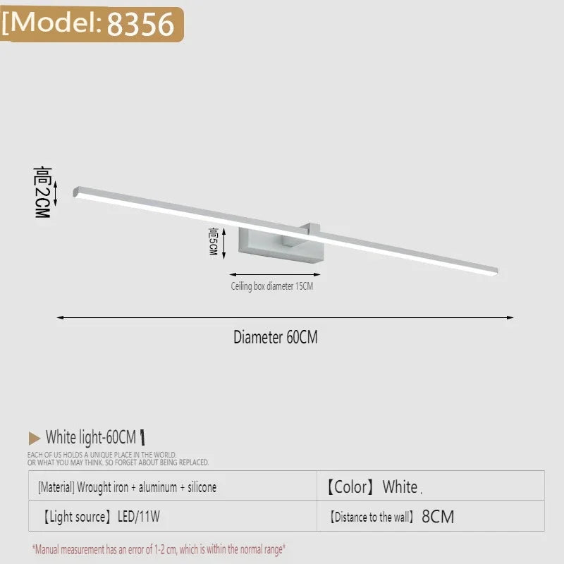 Modern Minimalist LED Mirror Wall Light Strip Home Wall Light Bathroom Makeup Mirror Light Aluminum Interior Decor Lighting