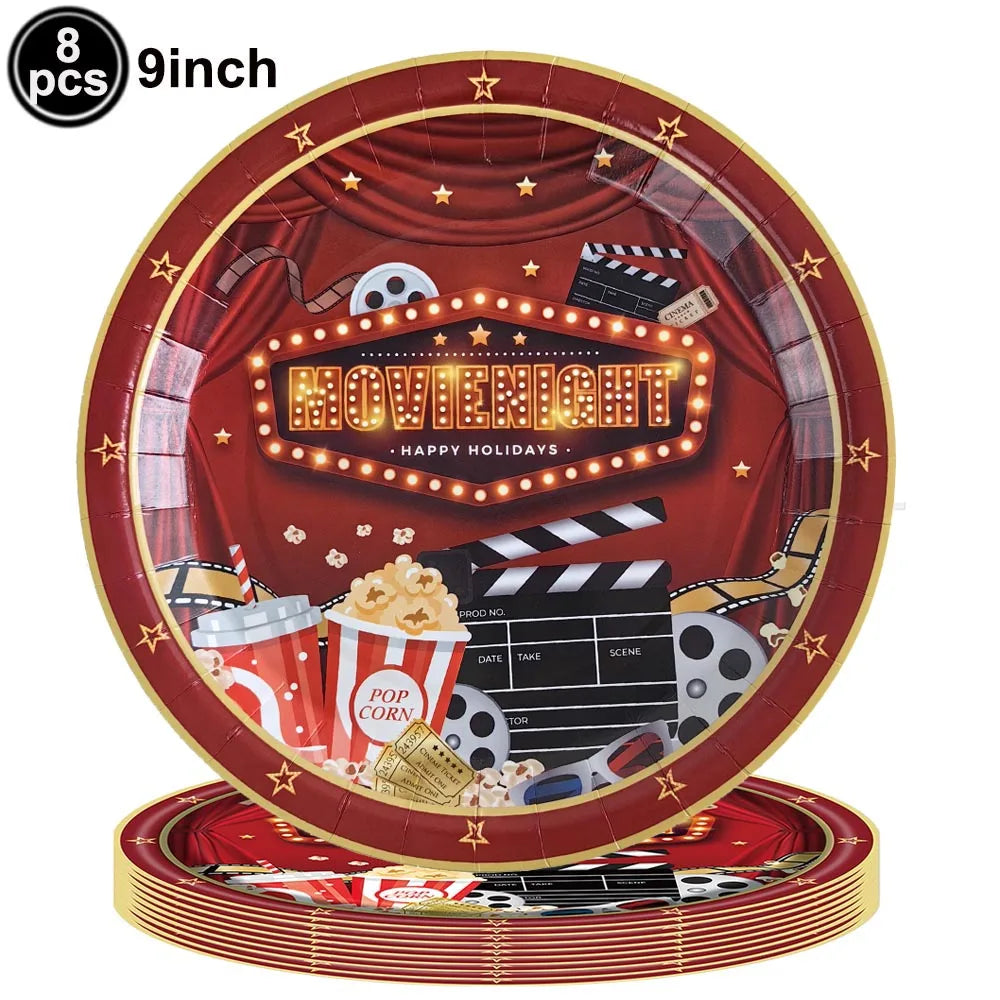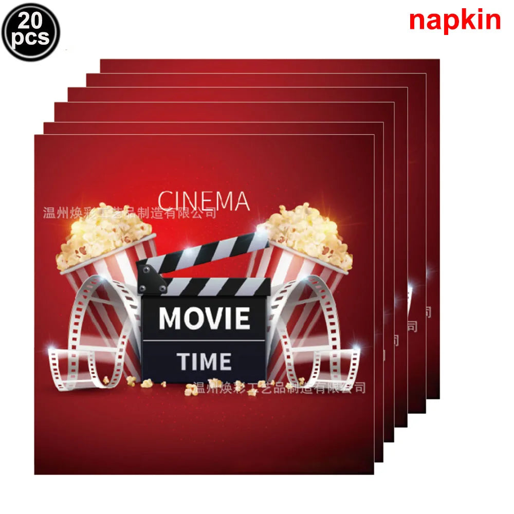 Movie Night Theme Decoration Inflatable Camera Plastic Tablecloth PaperTableware Banner Happy Birthday Movie Night Party Supplie