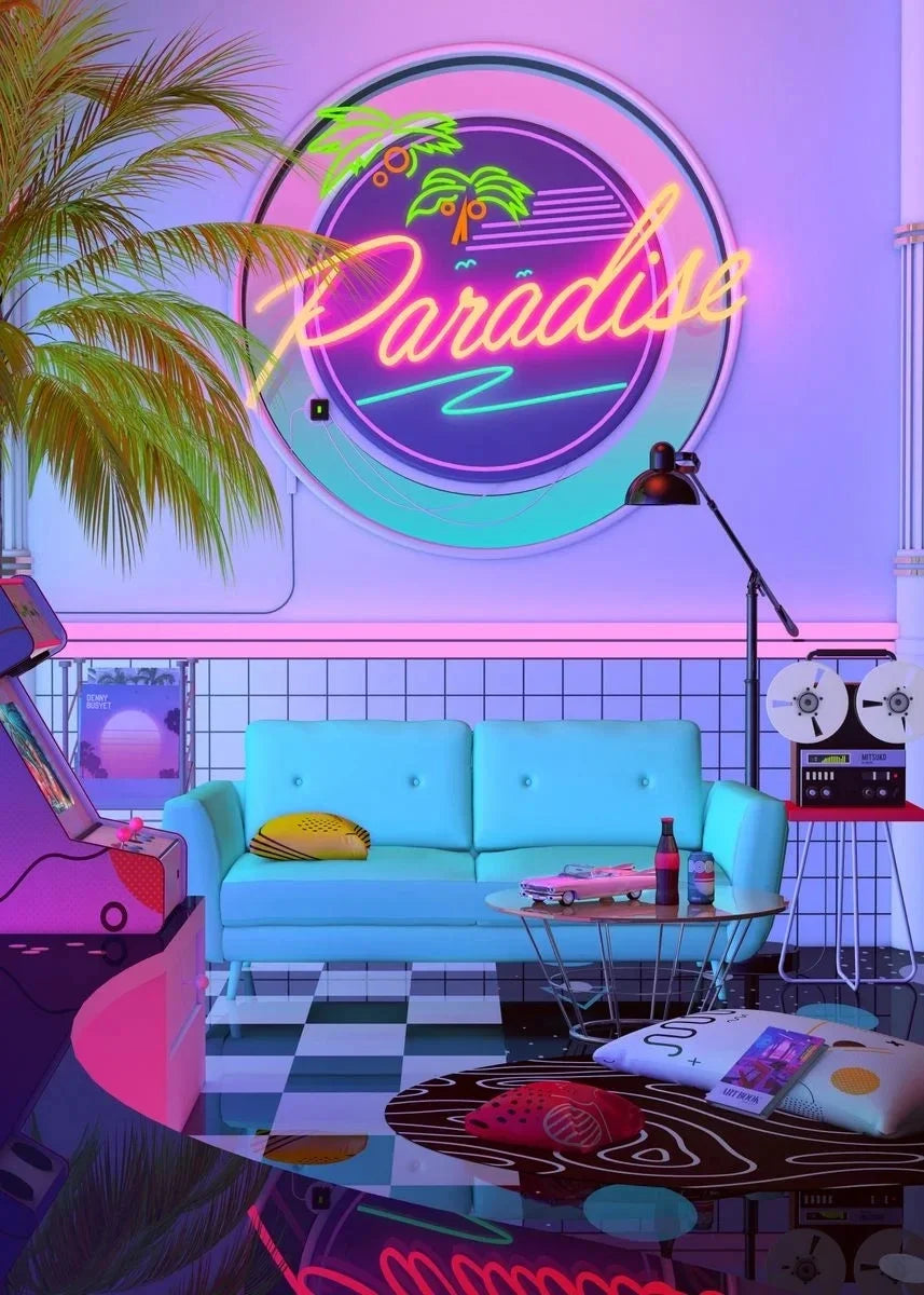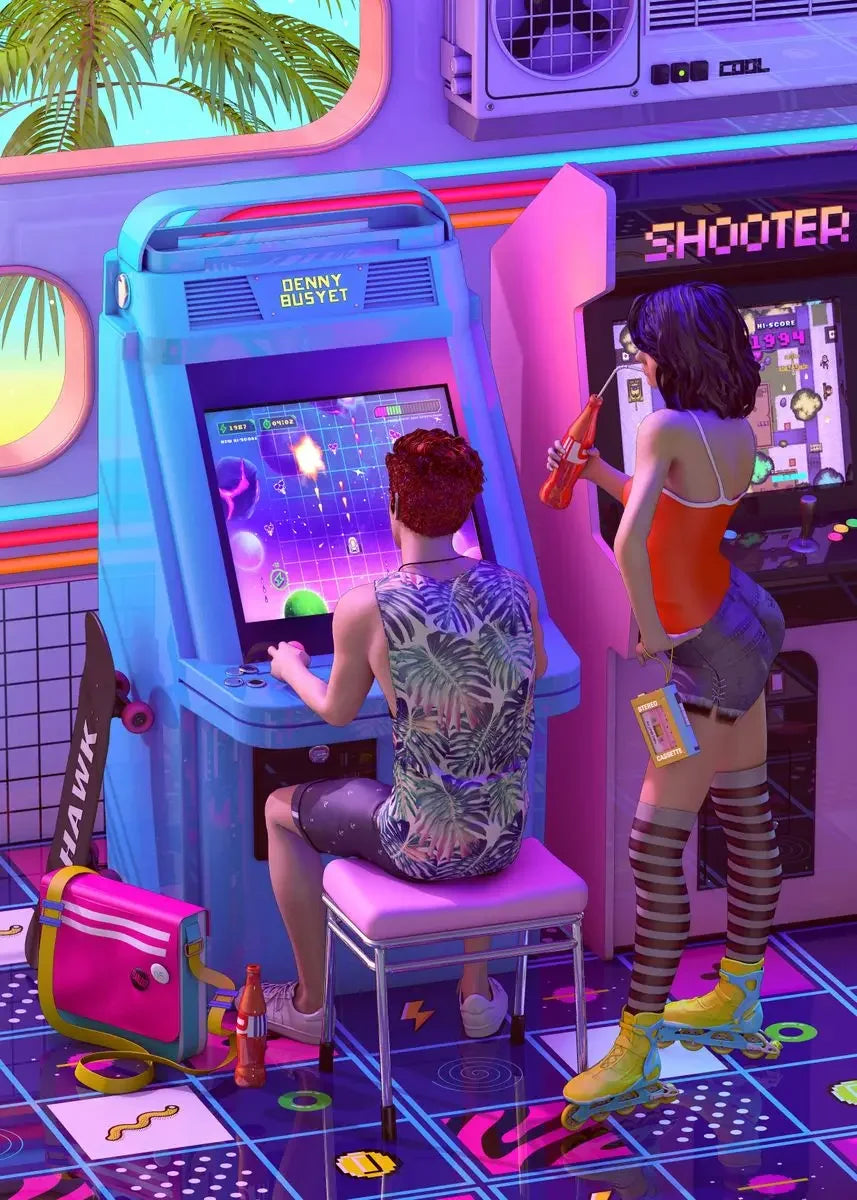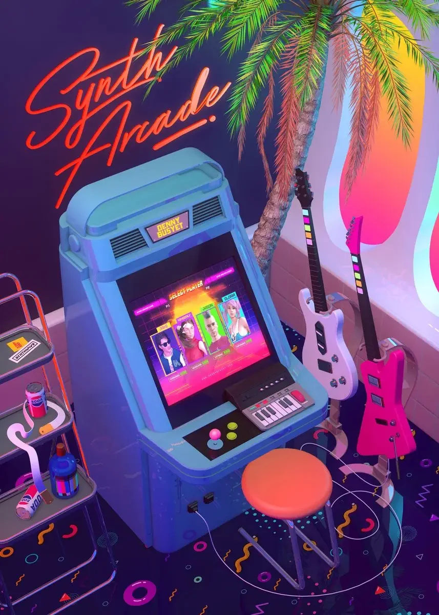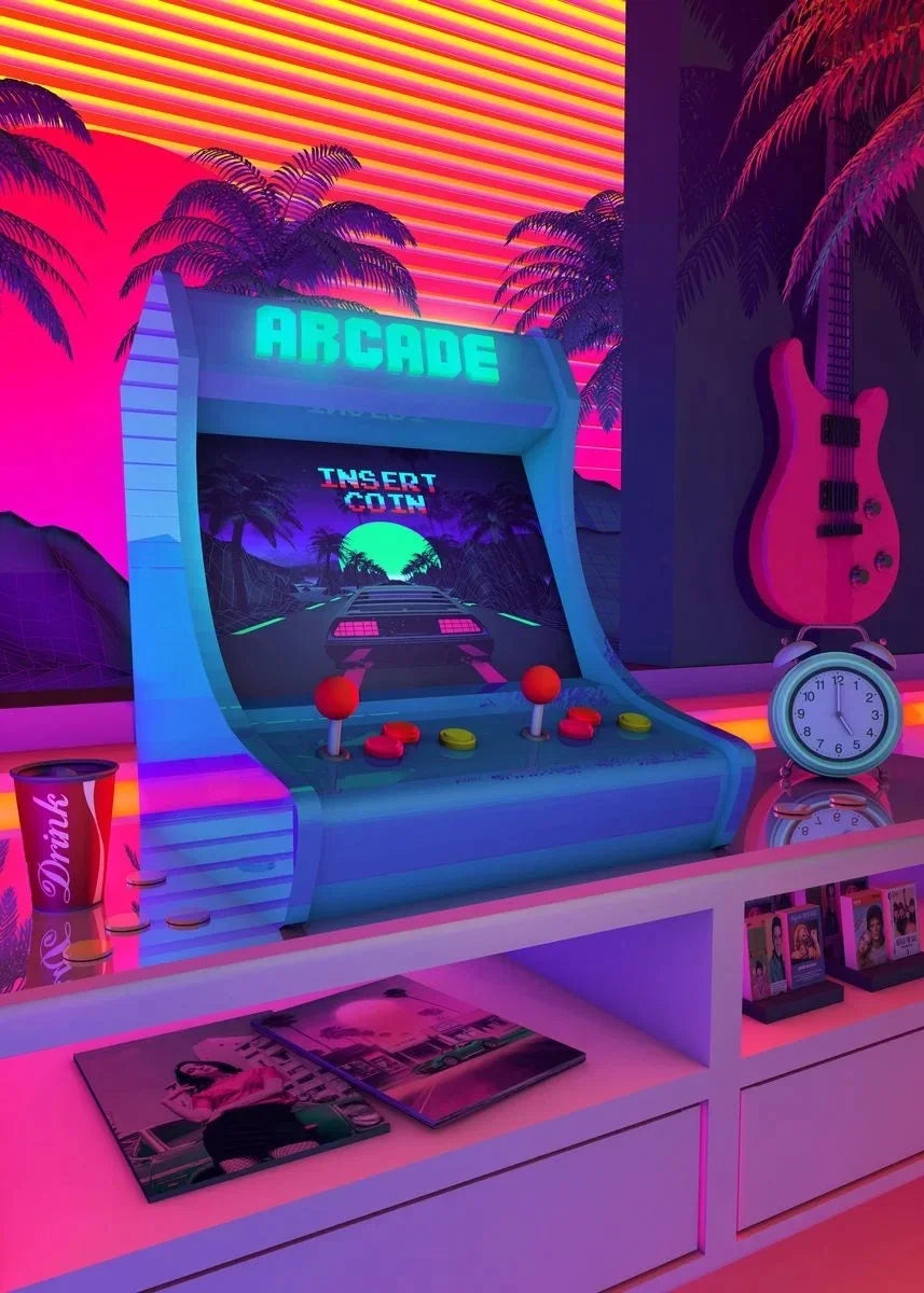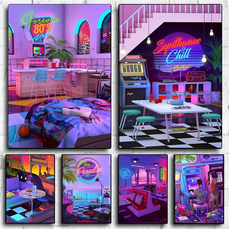 Neon Synthwave Arcade Zone Dream Posters Canvas Painting Game Playroom Wall Art Picture For Cafe Club Room Home Decoration
