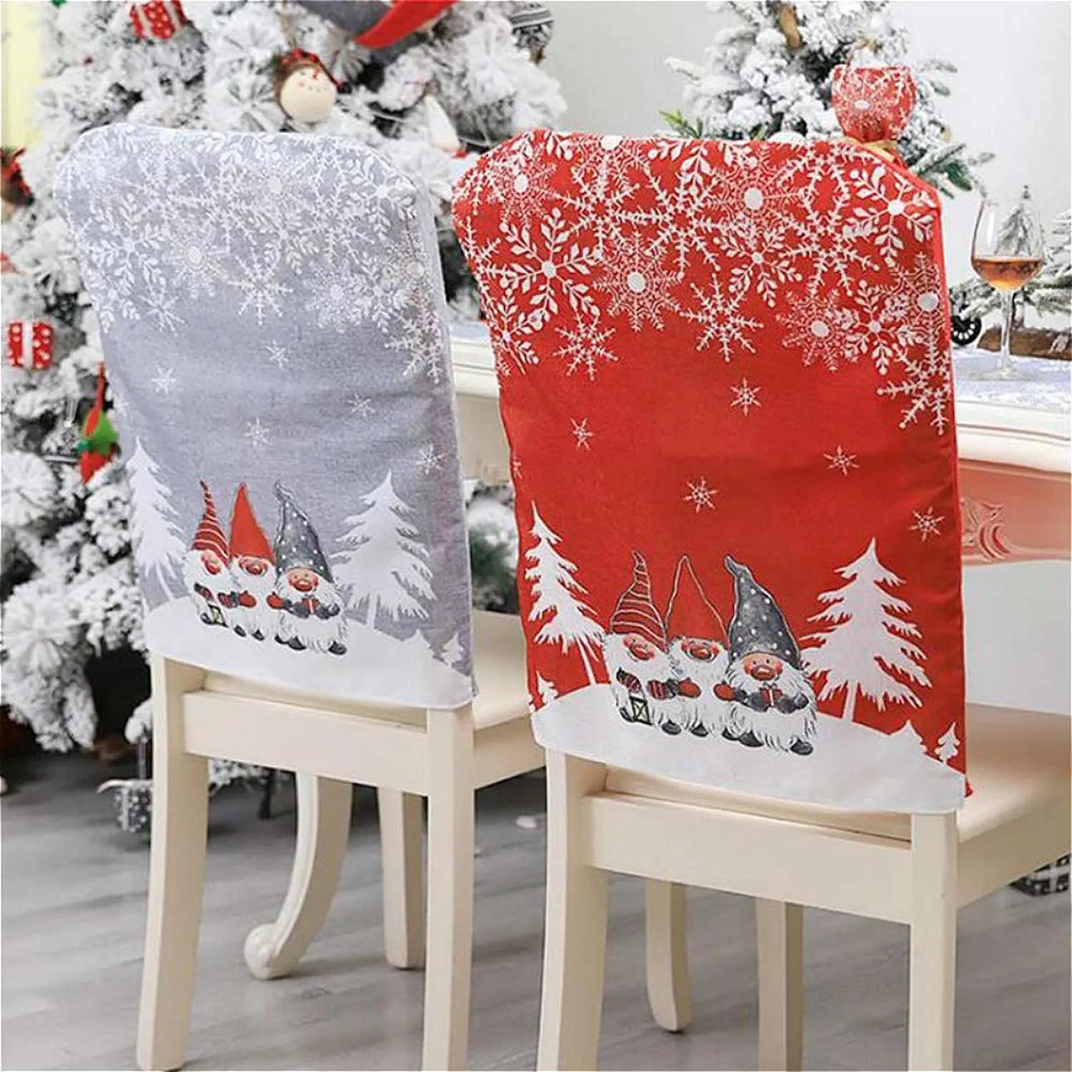 New 2/1PC Christmas Chair Cover Thick Chair Back Cover Festive Chair Back Covers Washable for Christmas Dining Room Decoration