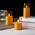 Pack of 3 Grey/Gold Acrylic Cup Flameless Candles Battery Powered Timer, Remote Control, LED Cylindrical Fake Glass Candle