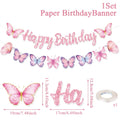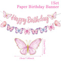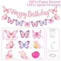 Pink Happy Birthday Banner With Butterfly Dancing Hanging Pendant Garlands Girls Princess 1st Happy Birthday Party Decorations