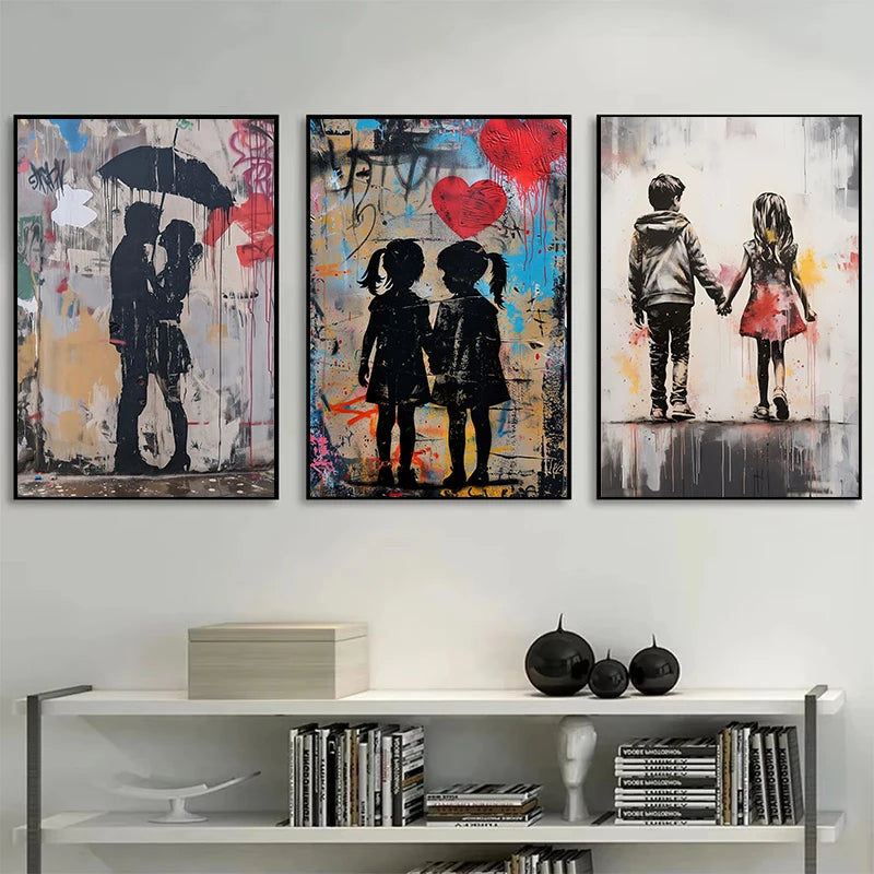 Pop Street Graffiti Wall Art Banksy Boy Girl with Balloon on Canvas Posters and Prints Painting for Living Room Home Decor Gifts