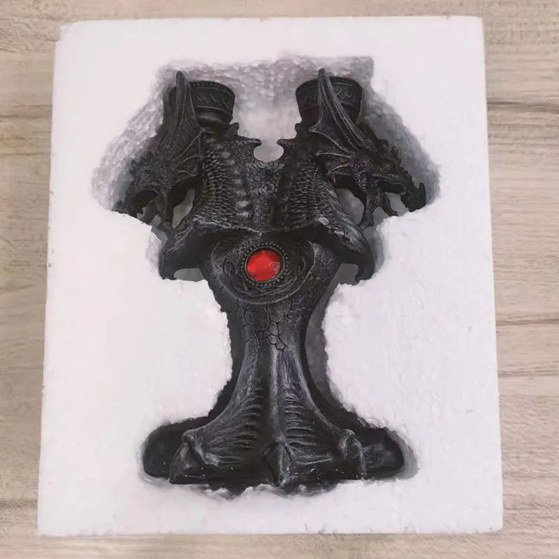 Resin Figurines Candlestick Halloween Medieval Dragon Altar Statue Sculpture Holder Stand 2 Pcs Candle Sticks Home Desk Decor