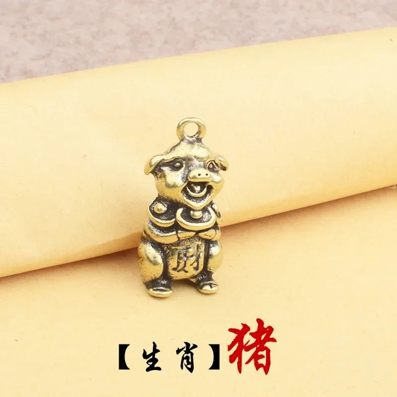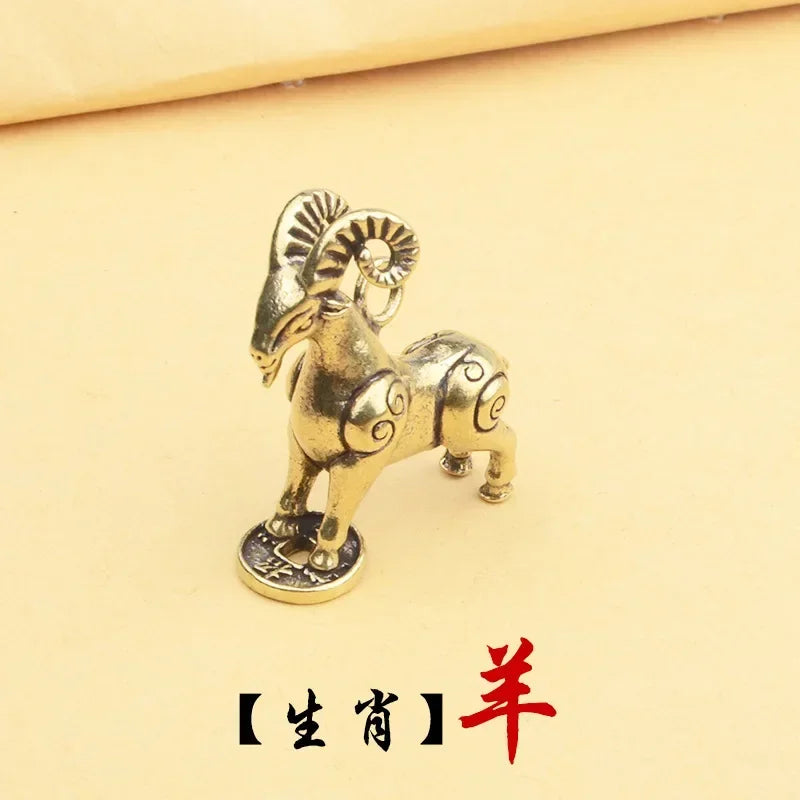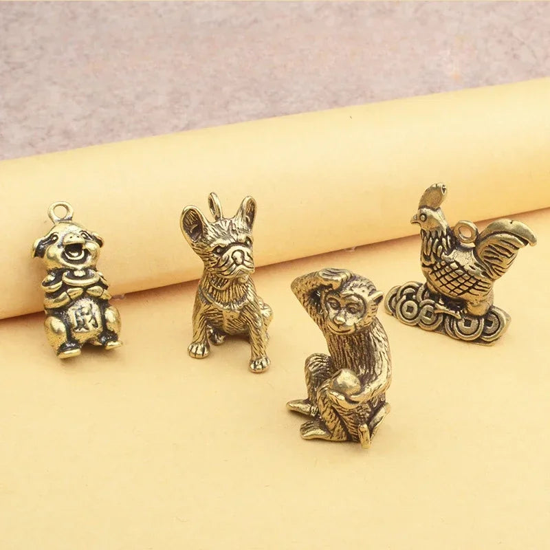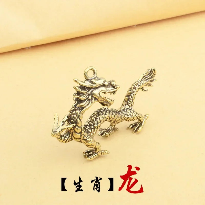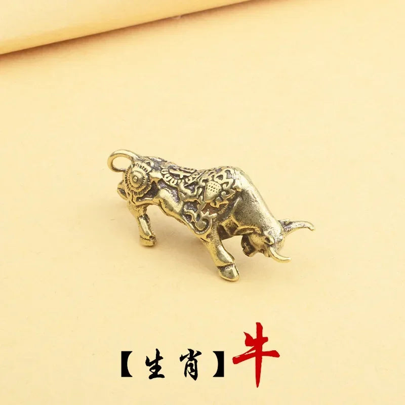 Retro Chinese Twelve Zodiac Statues Bull Dragon Ornament Sculpture Copper Miniatures Figurines Zodiac Key Pendant Home Decor