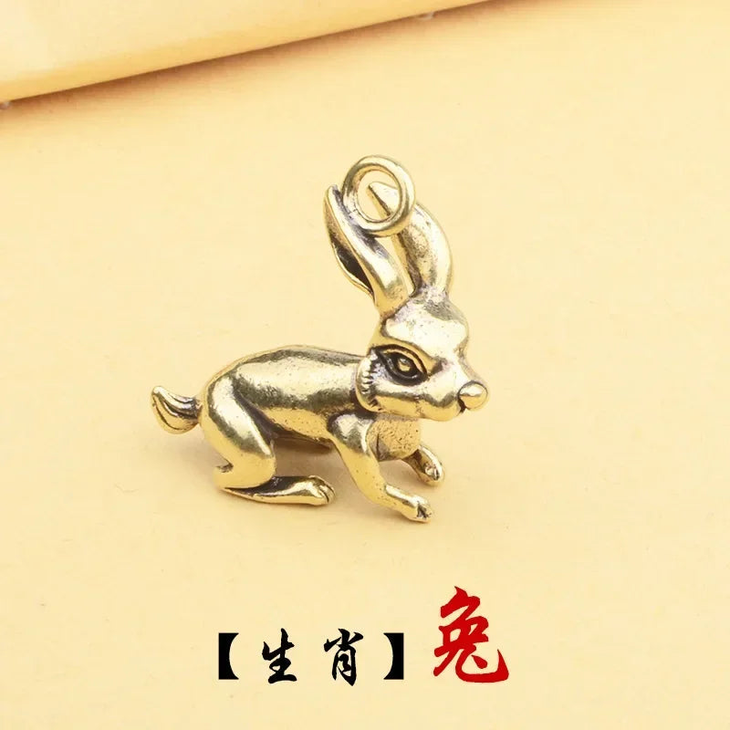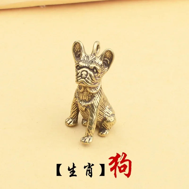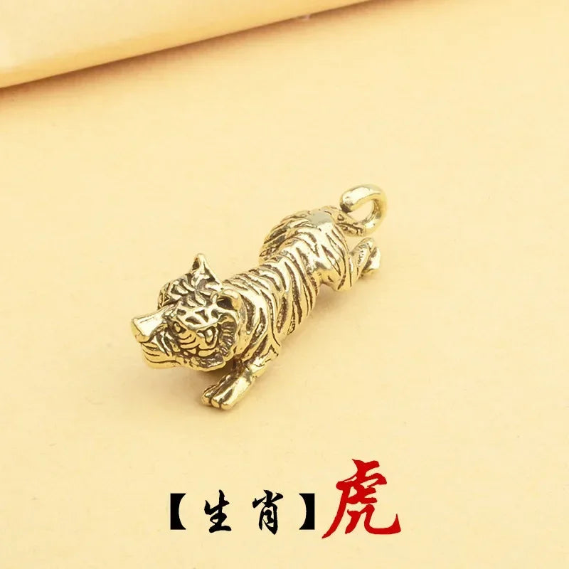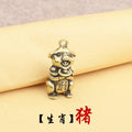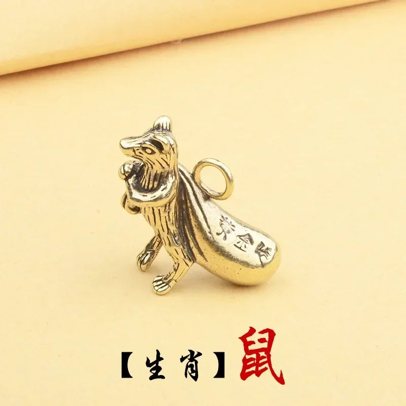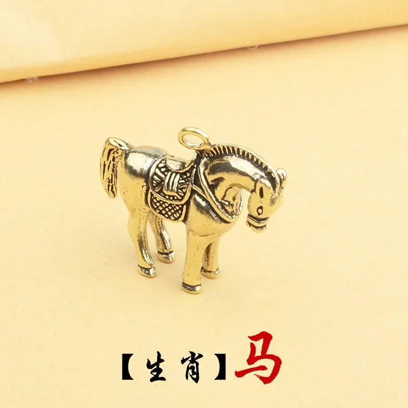 Retro Chinese Twelve Zodiac Statues Bull Dragon Ornament Sculpture Copper Miniatures Figurines Zodiac Key Pendant Home Decor