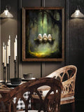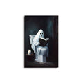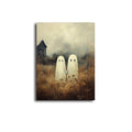 Retro Cute Ghost Companion & Reads Book Canvas Prints Monster Holds Black Cat Wall Art Poster for Living Room Halloween Decor