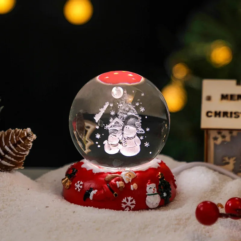 Santa Claus Snowman festive 3D carved crystal ball luminous nightlight decoration gift tabletop decoration home accessories
