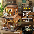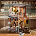 SnapTogs DIY Miniature Duplex café Wooden Building Blocks Kit House Roombox Book Nook Tiny Doll House Gift Gift Decor Music Box